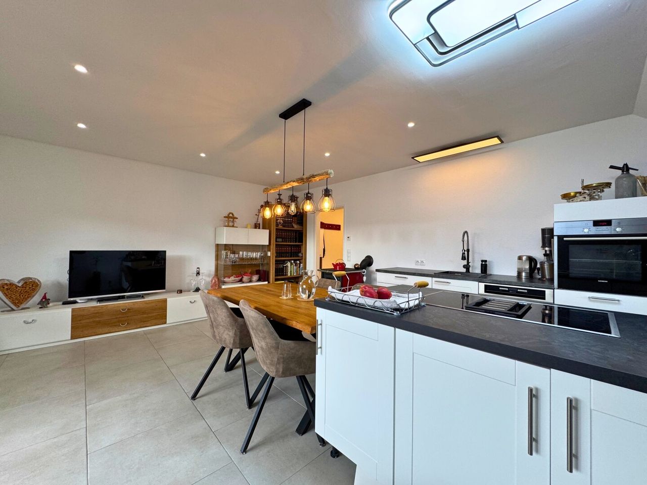 Einbauküche mit offenem Wohn-/Essbereich