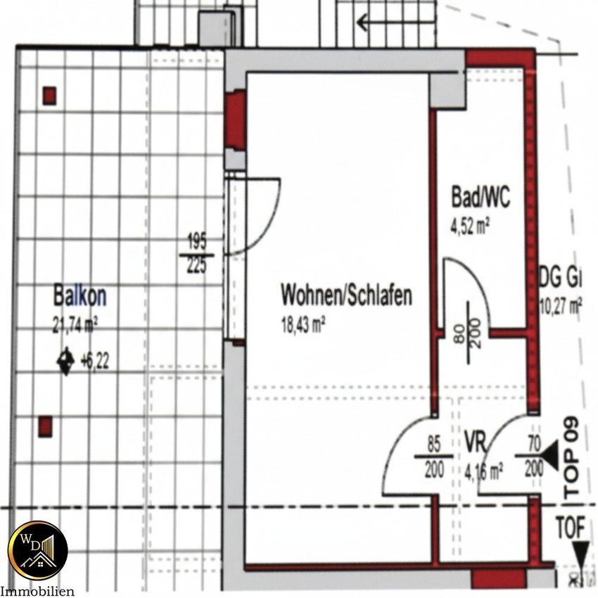 Raumaufteilung / Flächen: Wohnfläche 27,14 m² + Balkon 21,61 m²