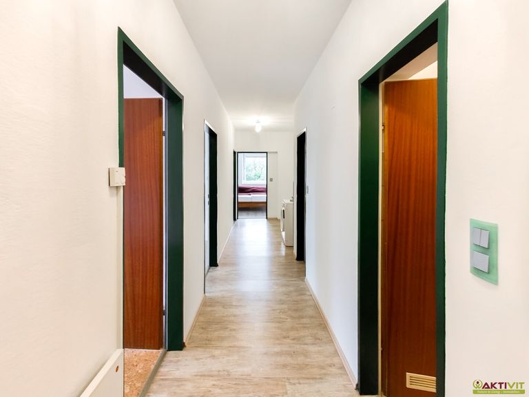 Die Wohnung umfasst rund 79 m² Wohnfläche und verfügt über insgesamt drei Zimmer. Neben einem Wohnzimmer stehen zwei weitere Räume zur Verfügung, die flexibel als Schlaf-, Arbeits- oder Kinderzimmer genutzt werden können. Die Küche ist als Einbauküche ausgestattet und bereits im Kaufpreis enthalten. Das Bad mit Fenster und Dusche sorgt für angenehmes Tageslicht, zudem gibt es ein separates WC. Praktisch ergänzt wird die Wohnung durch ein Kellerabteil mit rund 5 m² Nutzfläche. Der Zugang zur Wohnung erfolgt barrierefrei über den vorhandenen Personenaufzug, einzig die Dusche ist bei Bedarf noch entsprechend anzupassen.