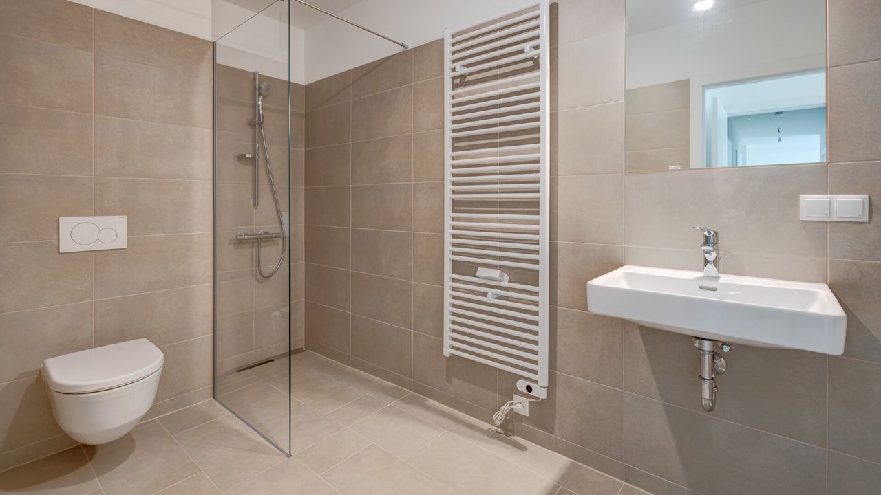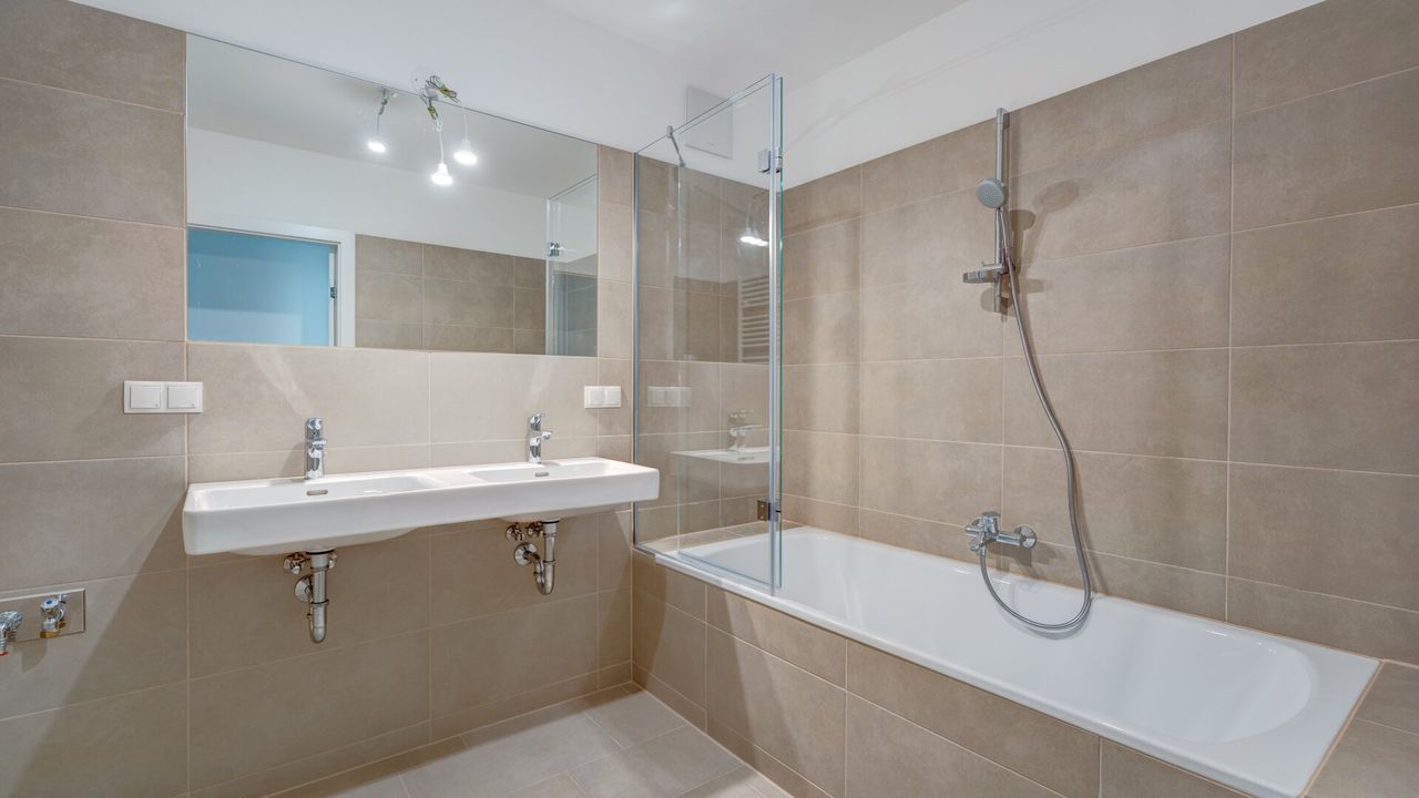 - Fliesen in den Nassräumen, Fertigparkett in den Wohnräumen