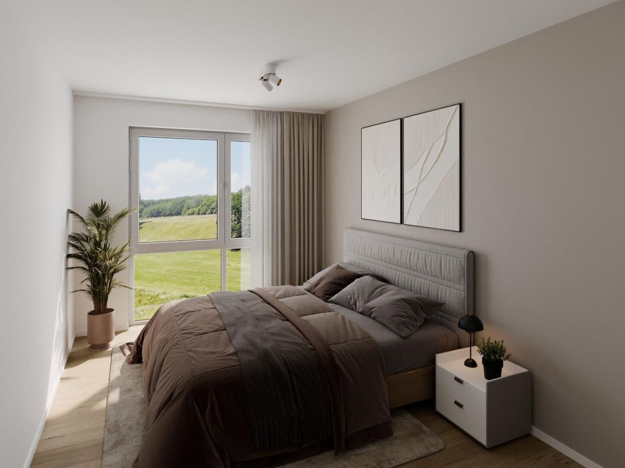 Bei der hier angebotenen Einheit handelt es sich um eine optimal geschnittene 2-Zimmer-Wohnung mit ca. 46 m² Wohnfläche im 1.OG. Der offen gestaltete Wohn-, Ess- und Küchenbereich bildet das Zentrum der Wohnung und überzeugt durch eine helle, freundliche Atmosphäre. Von hier aus gelangen Sie direkt auf den Balkon, der zusätzlichen Freiraum bietet und den Wohnbereich ideal erweitert. Das Schlafzimmer ist gut proportioniert und bietet ausreichend Platz für eine komfortable Einrichtung. Ein modern geplantes Badezimmer sowie ein praktischer Vorraum runden das Raumangebot funktional ab. Die Ausstattung entspricht modernen Wohnansprüchen mit großen Fensterflächen für lichtdurchflutete Räume, zeitgemäßen Sanitärbereichen und einem eigenen Kellerabteil für zusätzlichen Stauraum. Ein KFZ-Stellplatz kann optional zum Preis von € 6.000,– zzgl. USt erworben werden. Der Baustart ist voraussichtlich für Herbst 2026 vorgesehen.