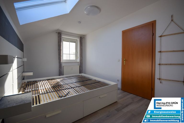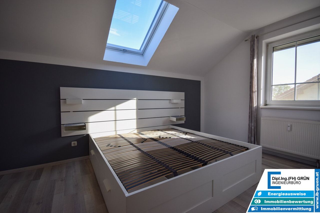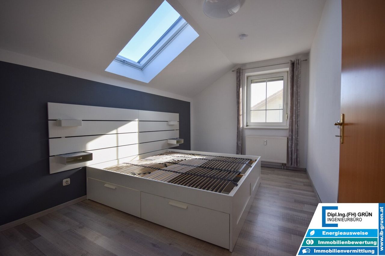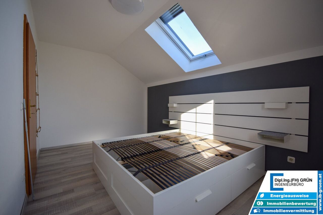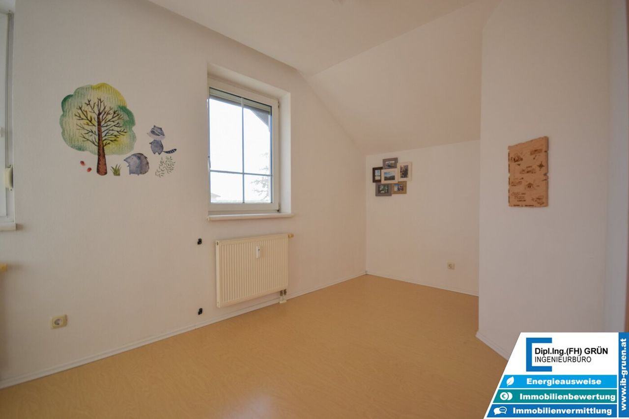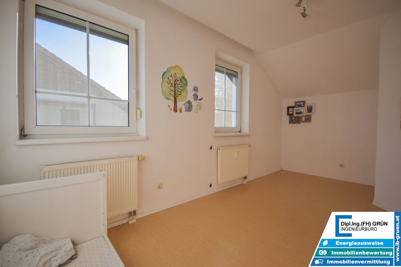 Alle Fenster verfügen über manuelle Rollläden, teilweise auch über Insektenschutzgitter. Die insgesamt vier Zimmer sind bestens aufgeteilt und bieten genügend Platz für Familie, Homeoffice oder Hobby.