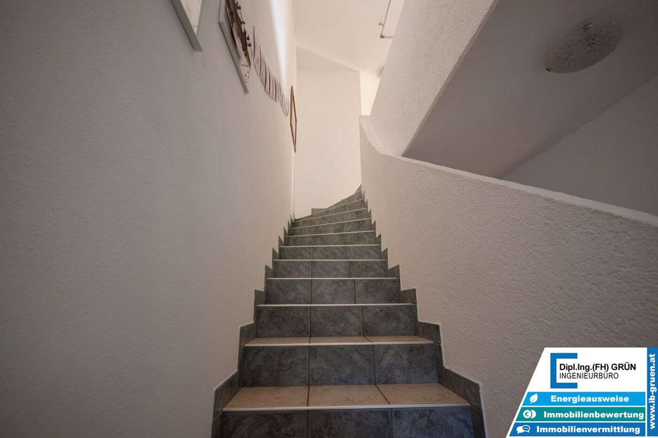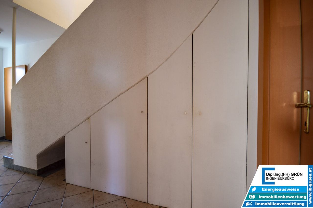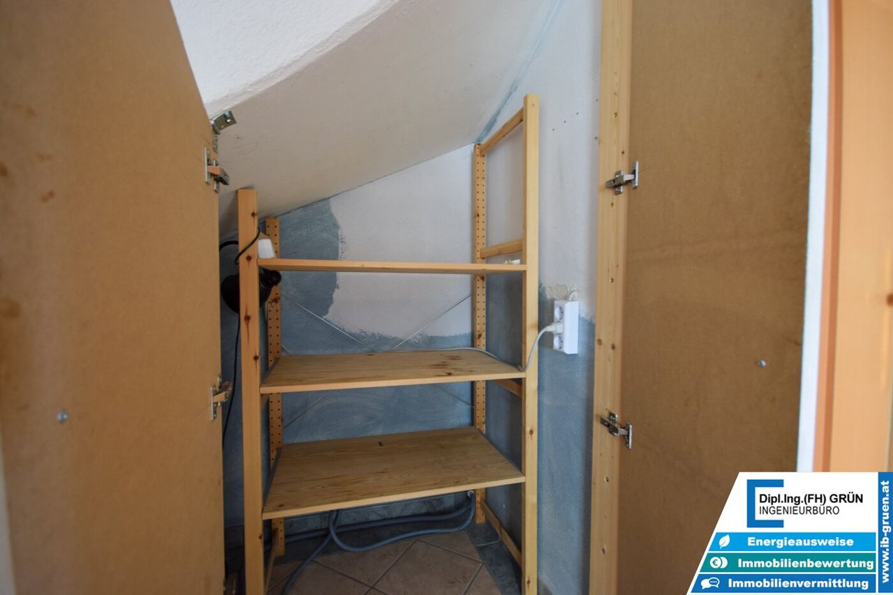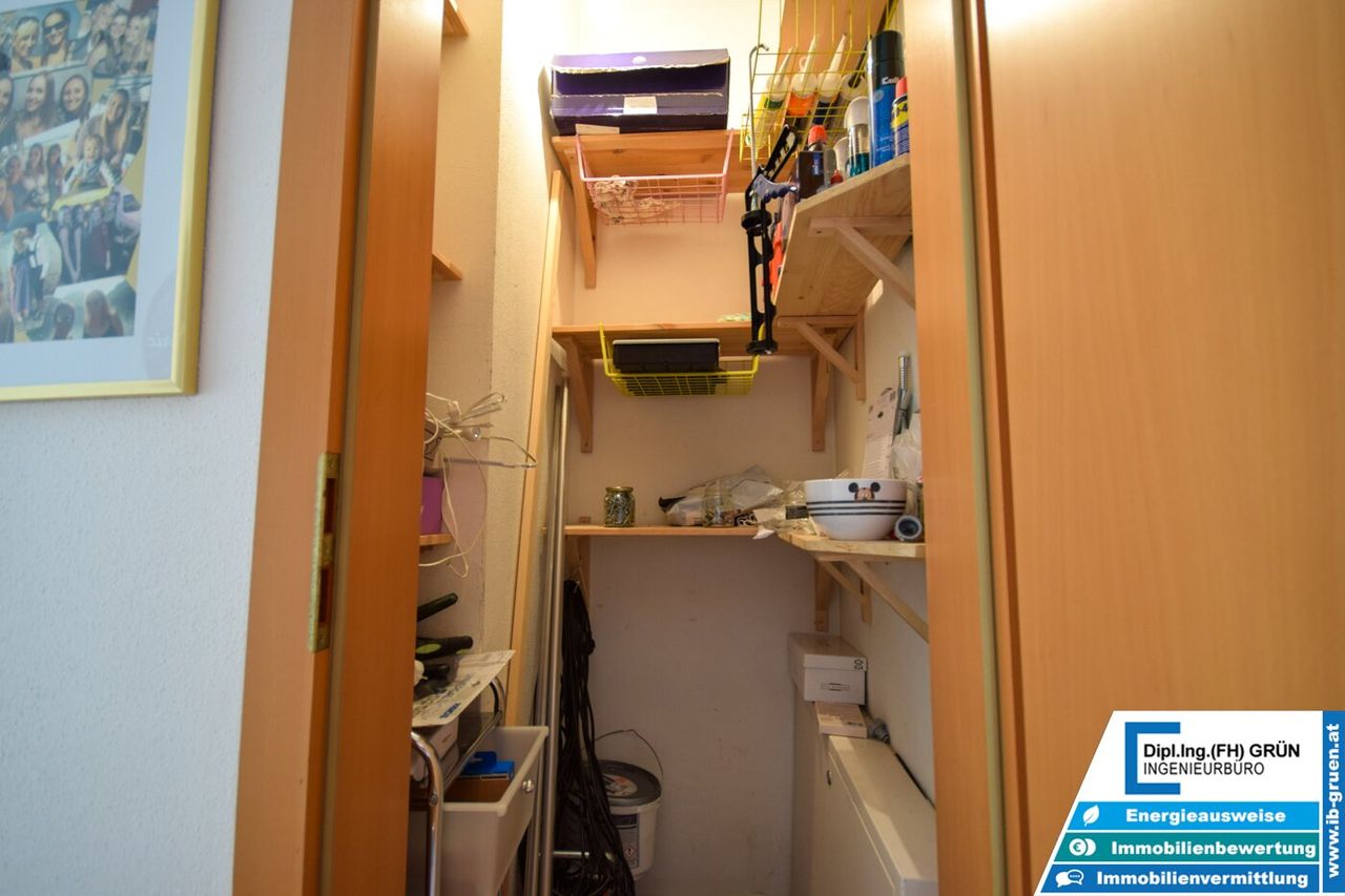 Ein großes Kellerabteil, ein allgemeiner Fahrradabstellraum sowie ein fix zugeordneter Parkplatz (ca. 70 m vom Haus entfernt) runden das Angebot ab. Optional könnte die allgemeine Außenfläche nach Rücksprache mit den Mitbesitzern, z. B. für eine Fahrradgarage, genutzt werden.