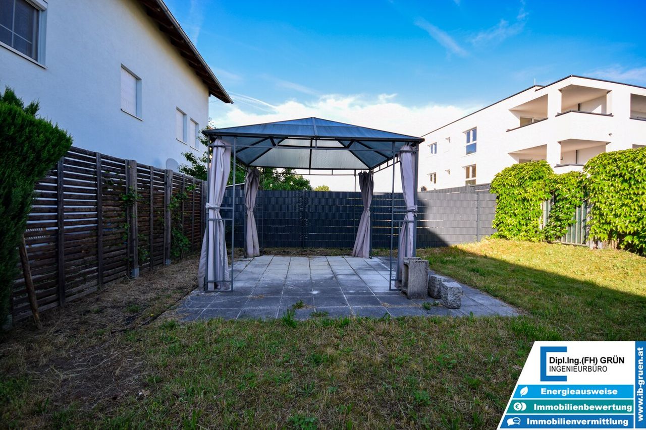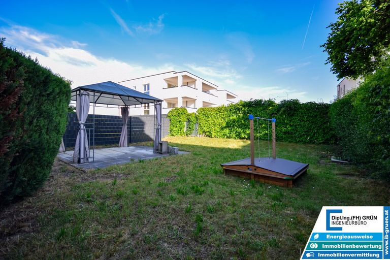 Zwei großzügige Balkone – einer direkt beim Wohnbereich, einer bei den Schlafräumen – laden zum Entspannen im Freien ein. Zusätzlich steht Ihnen ein privater Garten mit ca. 100 m² zur Verfügung, der mit einem modernen Pavillon ausgestattet ist – ebenfalls im Preis enthalten. Ein eigener Wasseranschluss im Garten sorgt für zusätzlichen Komfort bei der Pflege oder für heiße Sommertage. Der Garten ist direkt von der Wohnung aus einsehbar – ideal, um Kinder sicher und in Sichtweite spielen zu lassen.