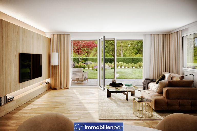 Großzügige Freiflächen wie Balkone, Terrassen und Eigengärten sowie lichtdurchflutete Räume schaffen eine angenehme Wohnatmosphäre.