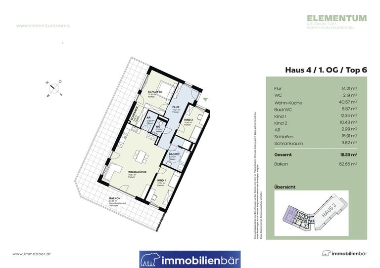 Wohnen bedeutet mehr als nur ein Ort zum Leben. Es bedeutet Lebensqualität, Gemeinschaft und Wohlbefinden. Mit ELEMENTUM entsteht in Marchtrenk ein modernes Wohnbauprojekt mit hochwertigen Eigentumswohnungen, das urbanen Komfort mit naturnahem Wohnen verbindet. Insgesamt umfasst das Projekt vier Wohnhäuser, von denen bereits drei erfolgreich an Großinvestoren verkauft wurden. Aktuell gelangt Haus 4 in den freien Verkauf.