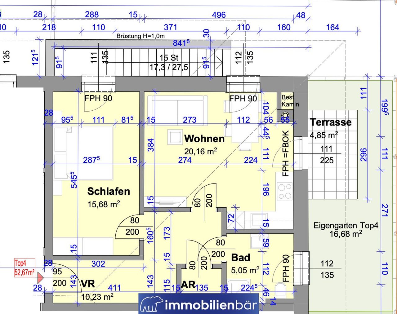 - TOP 4 – ca. 52,67 m² (2 Zimmer + Balkon)