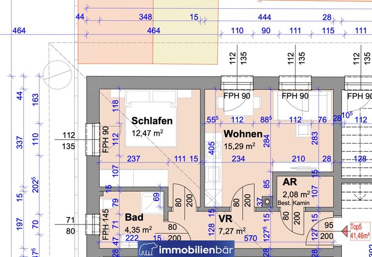 - TOP 5 – ca. 41,46 m² (2 Zimmer + Balkon)