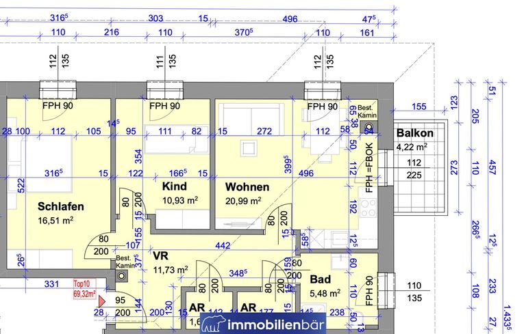 - TOP 10 – ca. 69,32 m² (3 Zimmer + Balkon)