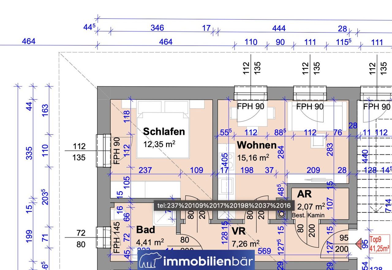 - TOP 9 – ca. 41,25 m² (2 Zimmer + Balkon)