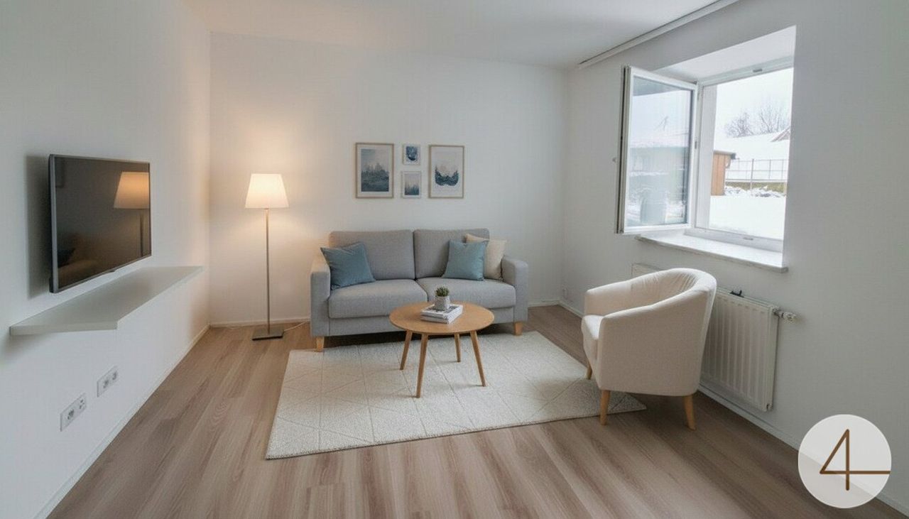 Die Liegenschaft verfügt über eine offene Wohn-Küche, welche das Herzstück der Immobilie bildet. Dieser Raum ist durch die Fenster lichtdurchflutet und bietet Ihnen aufgrund der Großzügigkeit eine Vielzahl an Einrichtungsmöglichkeiten, wie Sie anhand unserer Einrichtungsvorschläge auf den Bildern sehen können.