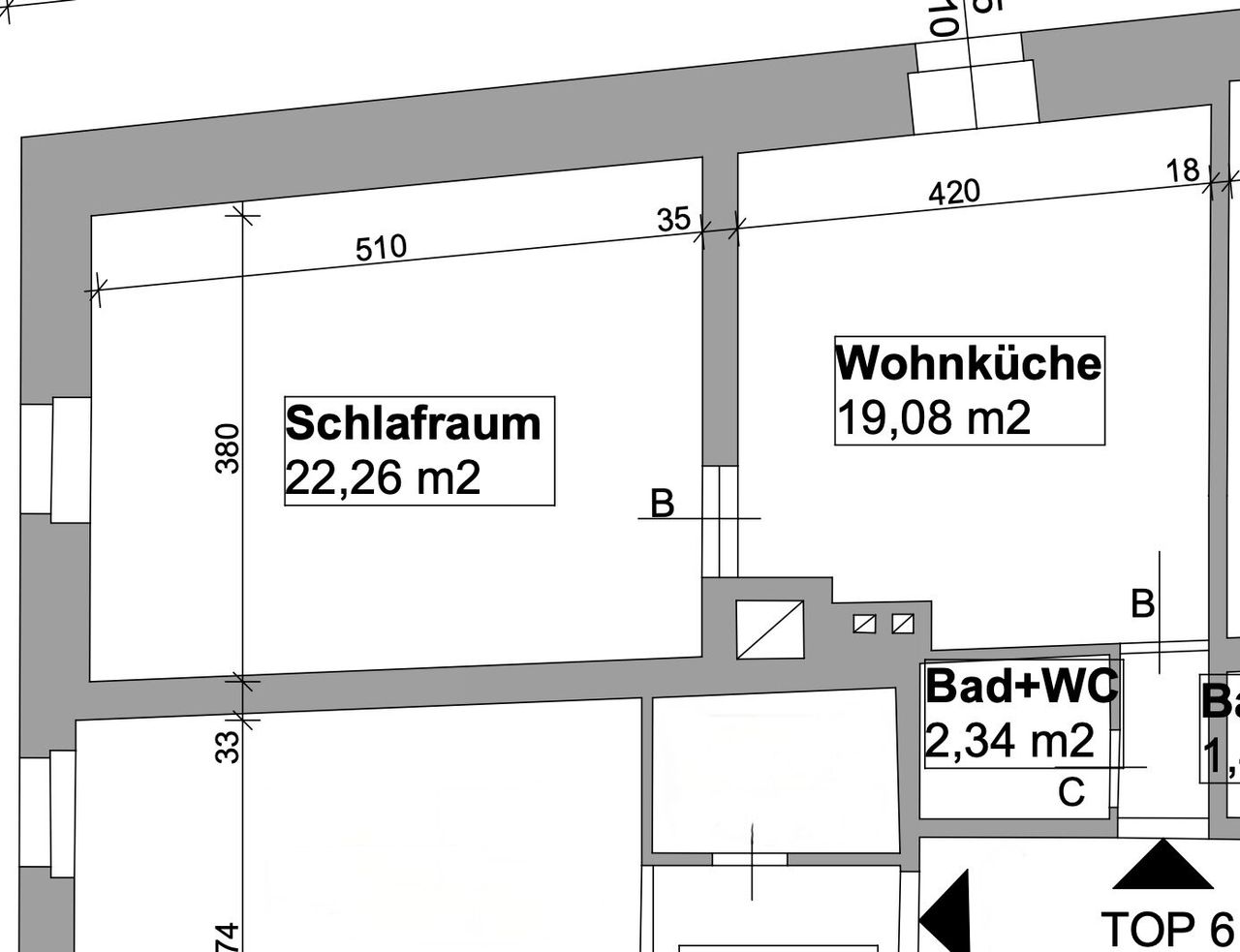 Zum Verkauf steht eine renovierungsbedürftige Wohnung in zentraler Lage von Lambach. Die Raumaufteilung umfasst einen Vorraum, ein Bad mit WC, eine Wohn-/Essküche sowie ein Schlafzimmer.