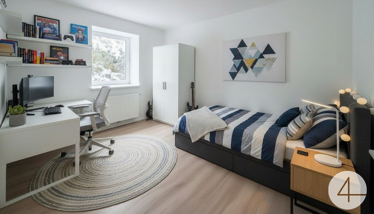 Weiteres verfügt die Wohnung über ein gemütliches Schlafzimmer und ein Kinderzimmer.