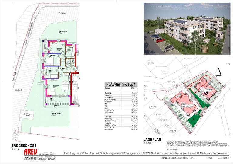 Die Gartenwohnung verfügt über einen eigenen Garten, der Ihnen Raum für persönliche Gestaltung und Entspannung bietet. Stellen Sie sich vor, wie Sie an sonnigen Tagen in Ihrem Garten die Seele baumeln lassen oder auf einer der zwei Loggien den Ausblick auf die grüne Umgebung genießen. Der Flachdach-Bau fügt sich harmonisch in die Landschaft ein und schafft eine besondere Wohnatmosphäre.