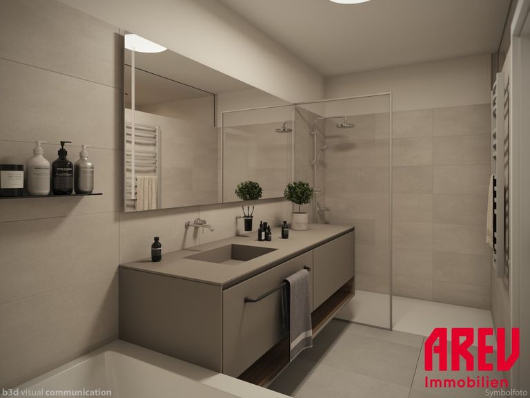 Alle Wohnungen sind ausgestattet gem. Bau- und Ausstattungsbeschreibung (ohne Möblierung od. sonstiger eingezeichneter Einrichtungen). Alle grafischen Darstellungen sind symbolhaft (Symbolgrafik) zu verstehen und geben die Wirklichkeit nur andeutungsweise wieder - die tatsächliche Ausführung kann aufgrund von behördlichen Auflagen und technischen Erfordernissen maßgeblich abweichen. Druckfehler, Änderungen und Irrtümer vorbehalten!