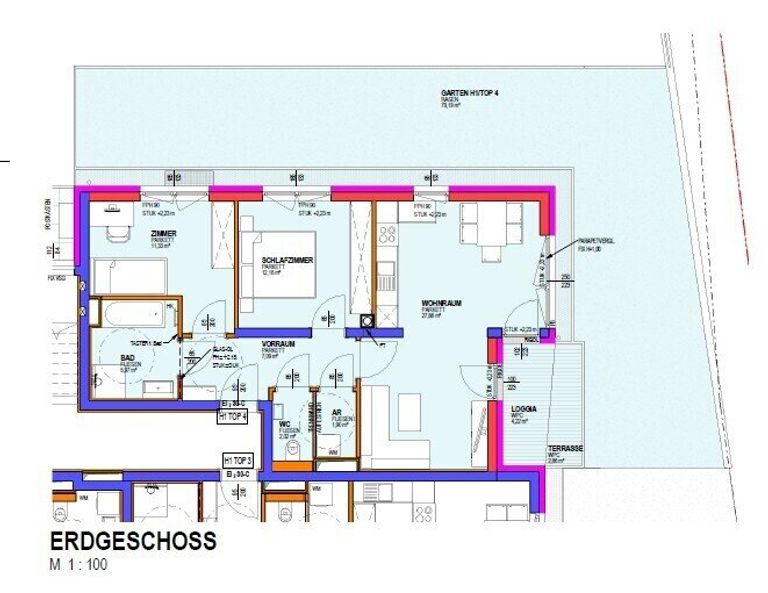 Alle Wohnungen sind ausgestattet gem. Bau- und Ausstattungsbeschreibung (ohne Möblierung od. sonstiger eingezeichneter Einrichtungen). Alle grafischen Darstellungen sind symbolhaft (Symbolgrafik) zu verstehen und geben die Wirklichkeit nur andeutungsweise wieder - die tatsächliche Ausführung kann aufgrund von behördlichen Auflagen und technischen Erfordernissen maßgeblich abweichen. Druckfehler, Änderungen und Irrtümer vorbehalten!