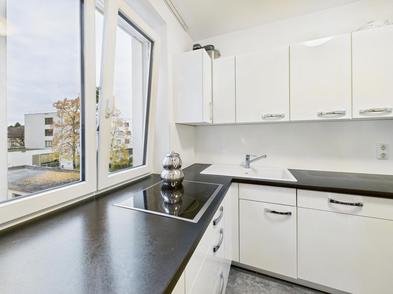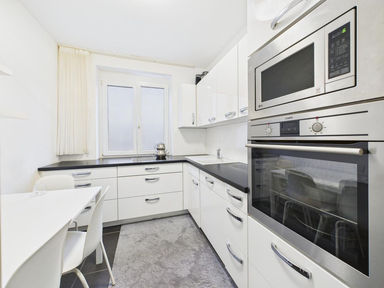 Die moderne Küche ist ein weiterer Wohlfühlbereich der Wohnung: funktional, hell und mit hochwertigen Geräten ausgestattet – ideal, um den Tag mit einem Frühstück bei offenem Fenster zu beginnen oder abends gemeinsam zu kochen.