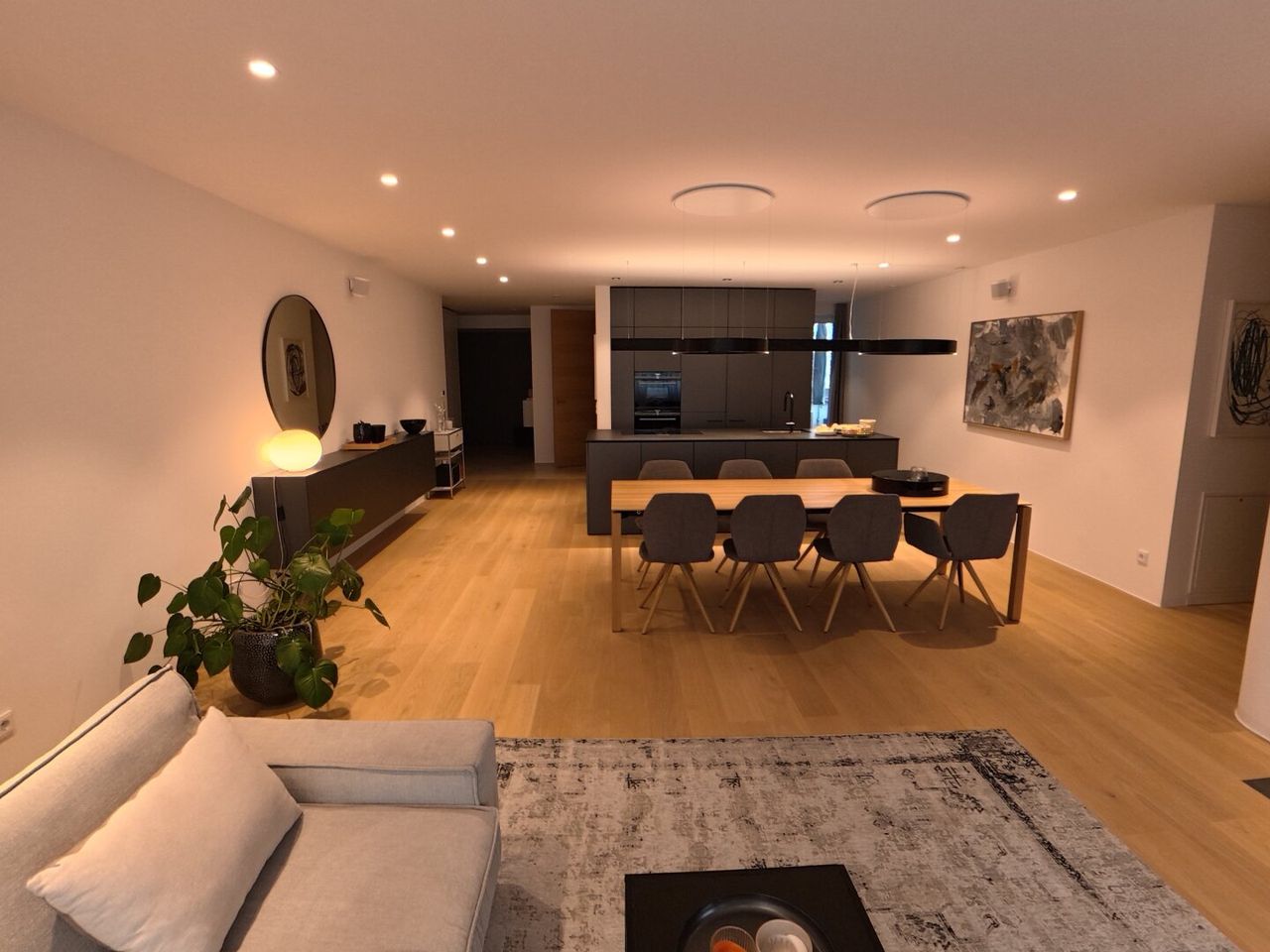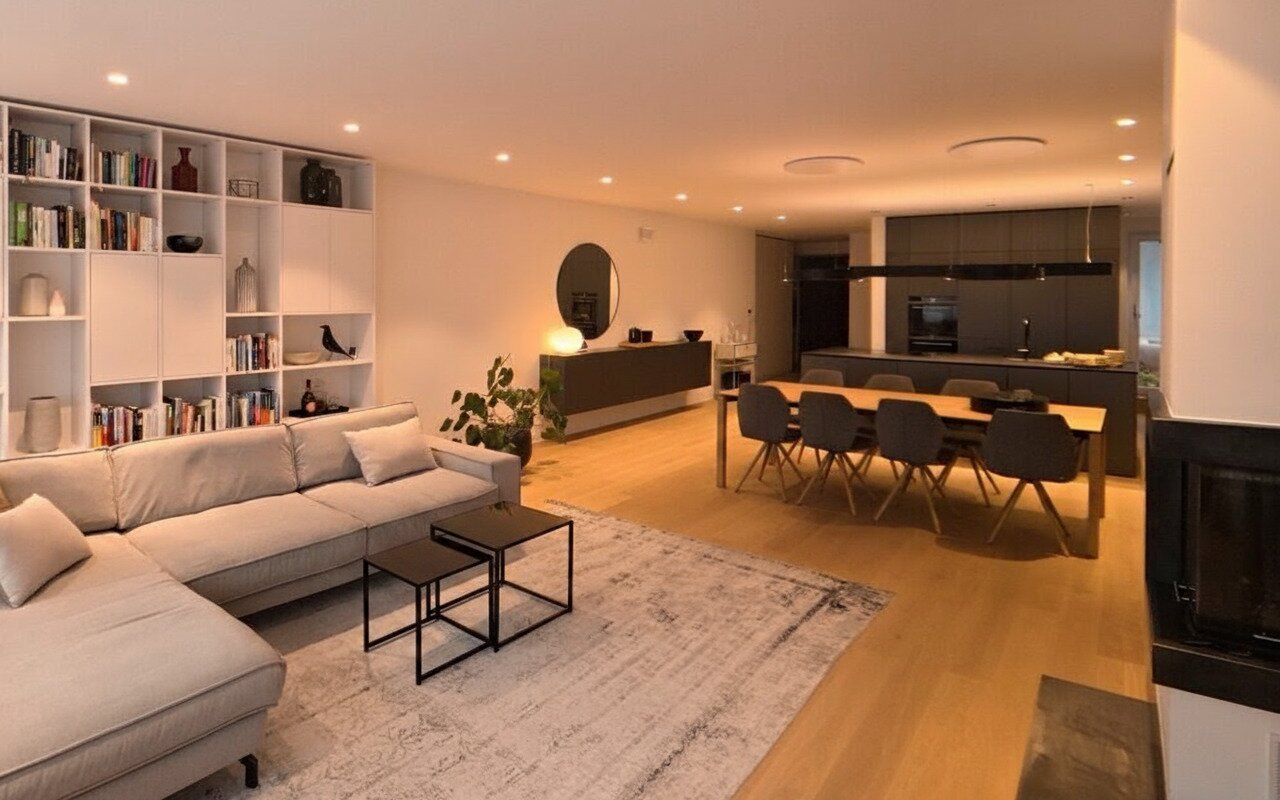 Die Wohnung besticht durch eine moderne Raumgestaltung mit Dielen und Fliesen, die eine angenehme Wohnatmosphäre schaffen. Fernwärme und Fußbodenheizung garantieren wohlige Wärme in der kalten Jahreszeit, während der gemütliche Kamin für behagliche Abende sorgt. Die offene Wohnküche lädt zum gemeinsamen Kochen und Verweilen ein und ist das Herzstück des Apartments.