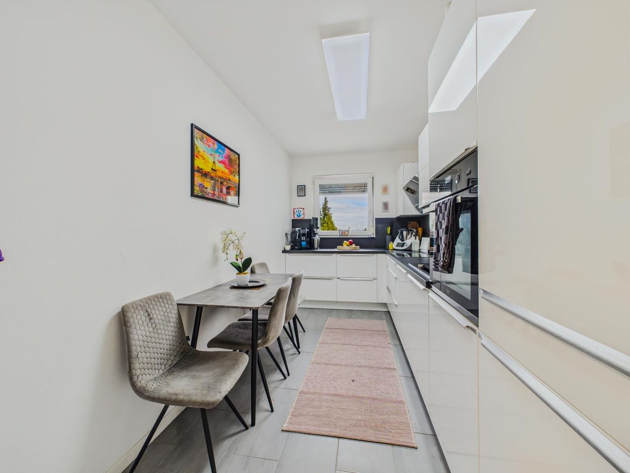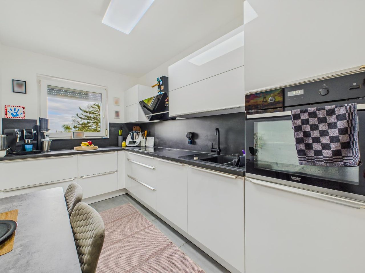 Die neuwertige Küche sowie ein hochwertiger Einbauschrank im Flur sind bereits im Kaufpreis inkludiert und fügen sich perfekt in das moderne Gesamtbild ein.