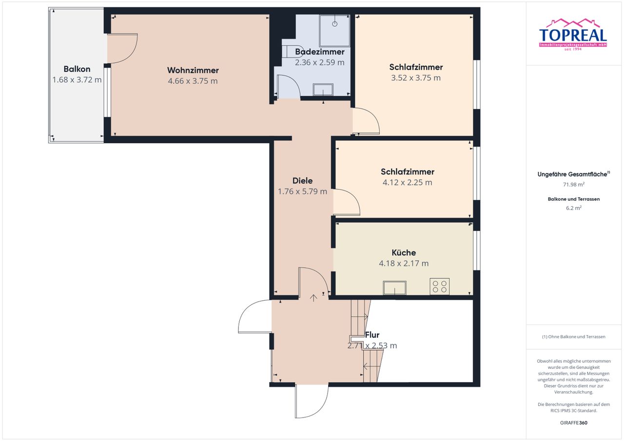 Auf rund 72 m² Wohnfläche erwartet Sie ein Zuhause, das durch seine Helligkeit, seinen gepflegten Zustand und die großzügige Loggia sofort überzeugt.