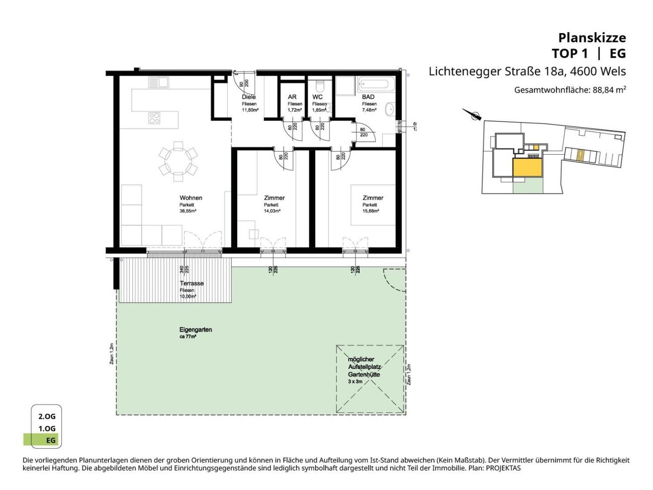 NEUBAU/ERSTBEZUG - Hochwertige 3 Zimmer-Gartenwohnung in Wels-Lichtenegg