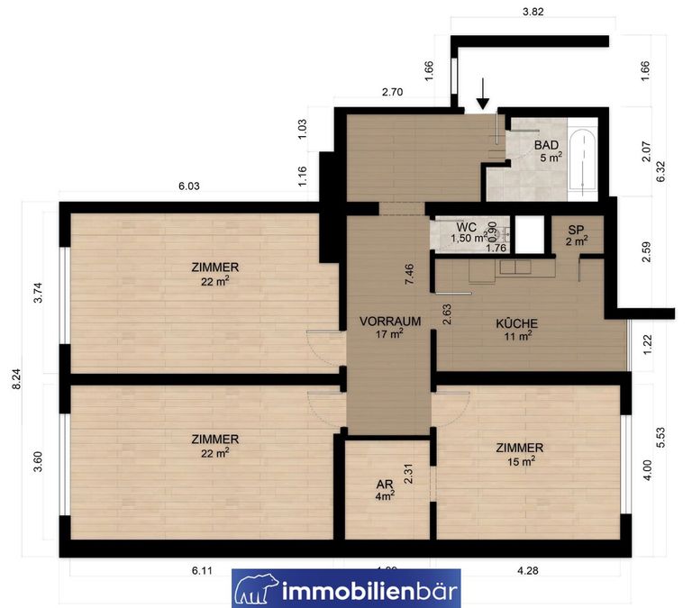 Über den hauseigenen Lift, oder zu Fuß über das Stiegenhaus gelangen Sie in die Wohnung mit Weitblick, welche sich im 9. Stockwerk des Gebäudes befindet. Die 3 geräumigen Zimmer bieten viel Platz und sind...