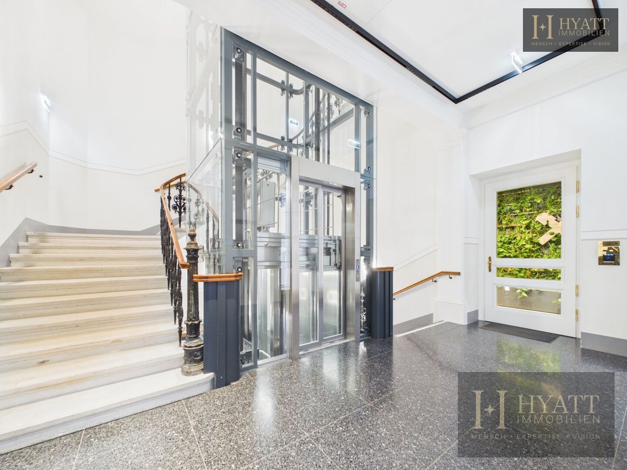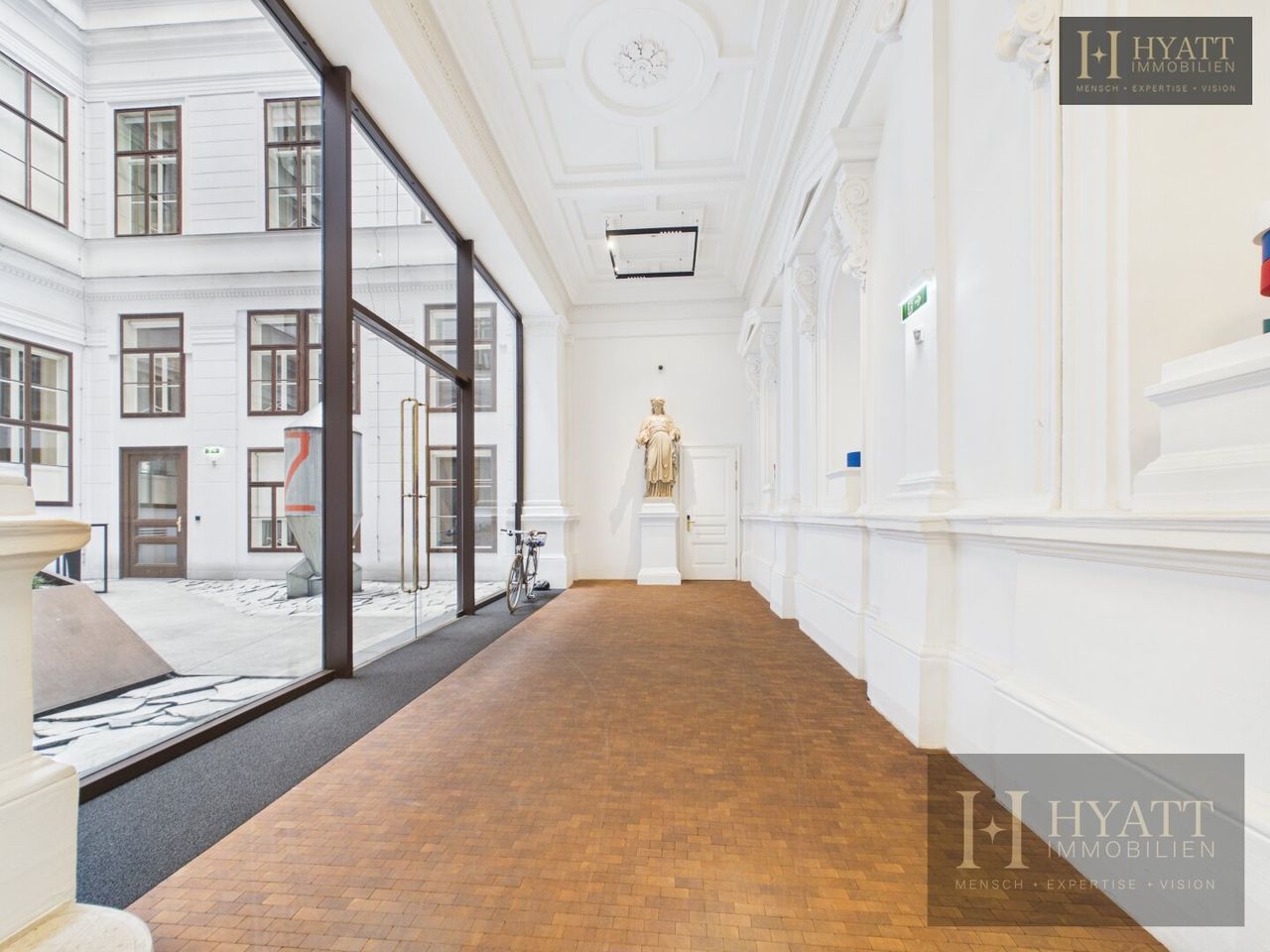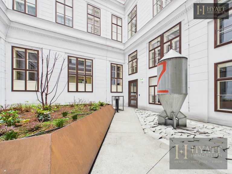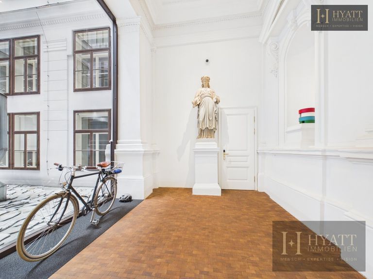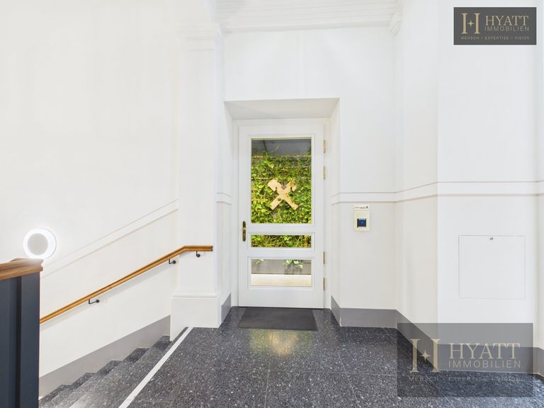 Das stilvoll revitalisierte Gebäude beeindruckt bereits beim Betreten durch seine repräsentativen Allgemeinflächen: elegante Stuckelemente, großzügige Raumhöhen und eine harmonische Verbindung aus klassischer Architektur und zeitgemäßem Design schaffen ein einzigartiges Entrée. Der aufwendig gestaltete Innenhof mit moderner Glasarchitektur unterstreicht den exklusiven Charakter dieser Immobilie und sorgt gleichzeitig für ein helles, offenes Gesamtbild.