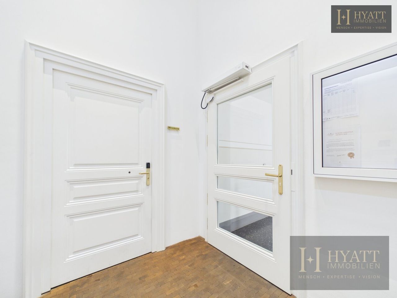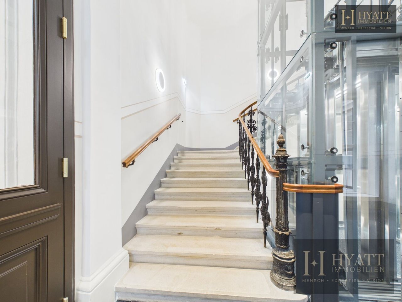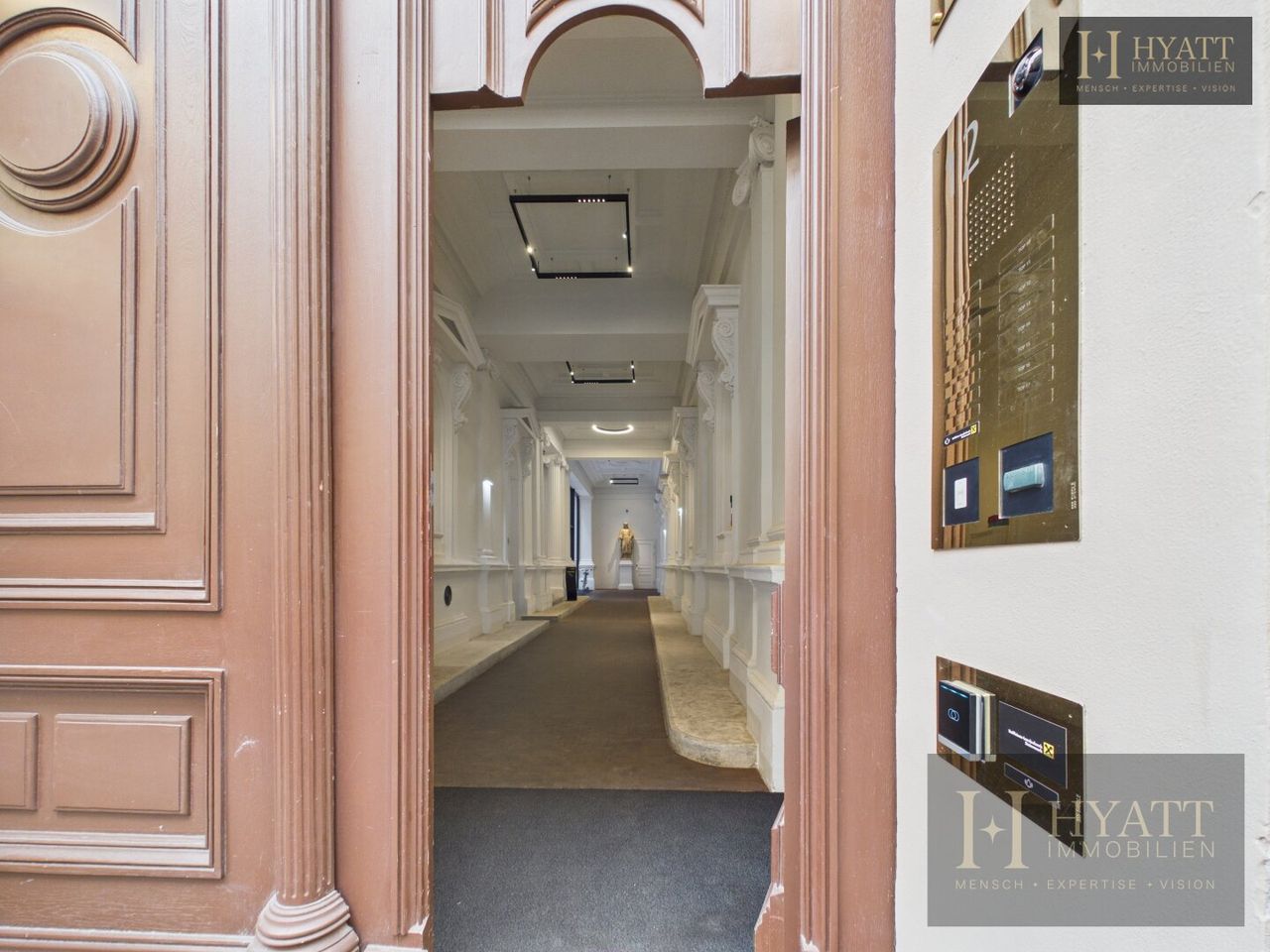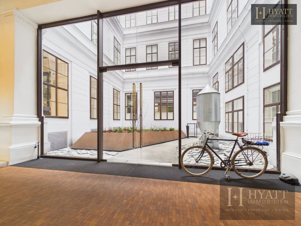 Das stilvoll revitalisierte Gebäude beeindruckt bereits beim Betreten durch seine repräsentativen Allgemeinflächen: elegante Stuckelemente, großzügige Raumhöhen und eine harmonische Verbindung aus klassischer Architektur und zeitgemäßem Design schaffen ein einzigartiges Entrée. Der aufwendig gestaltete Innenhof mit moderner Glasarchitektur unterstreicht den exklusiven Charakter dieser Immobilie und sorgt gleichzeitig für ein helles, offenes Gesamtbild.