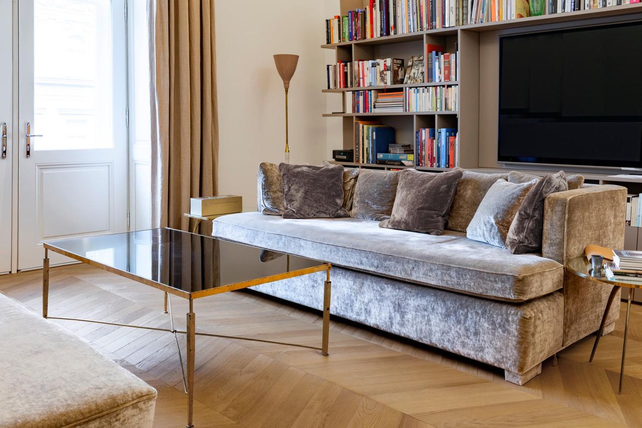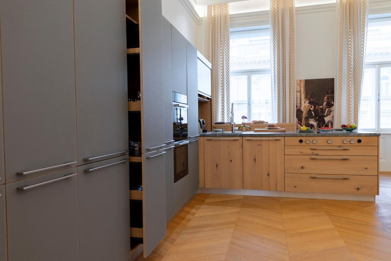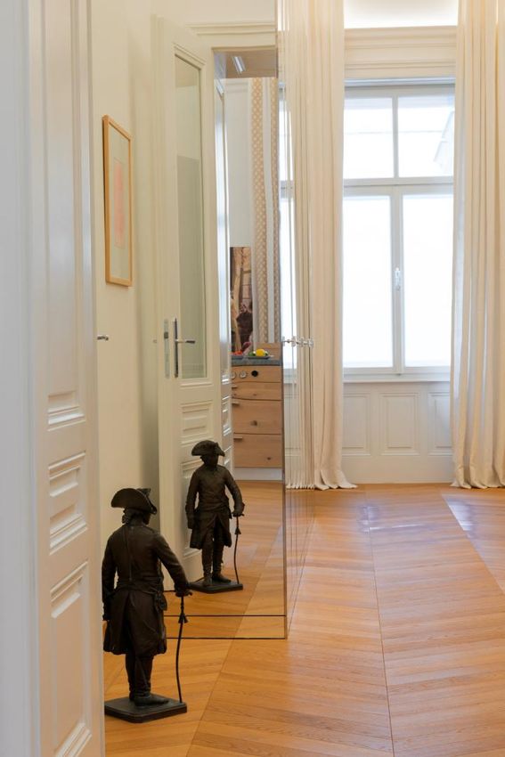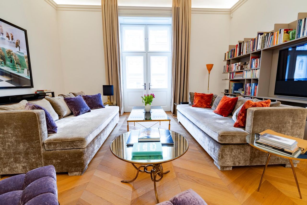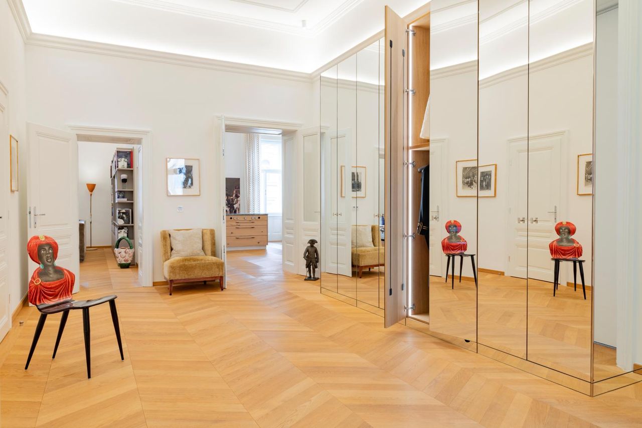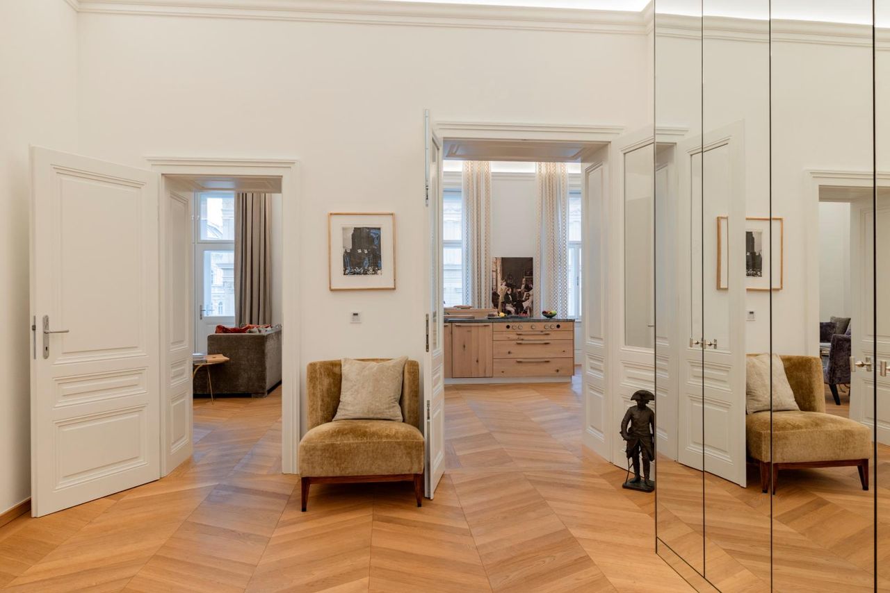Die Wohnung befindet sich im 3. Liftstock und wurde umfassend und hochwertig saniert. Klassische Altbaumerkmale wie großzügige Raumhöhen, elegante Flügeltüren, Fischgrätparkett und fein ausgearbeitete Stuckelemente treffen auf moderne Technik, maßgefertigte Einbauten und ein durchdachtes Lichtkonzept.