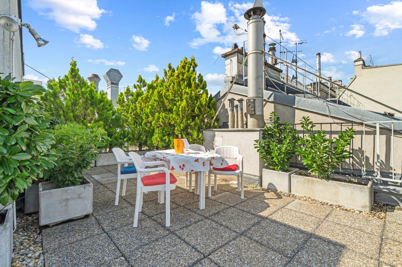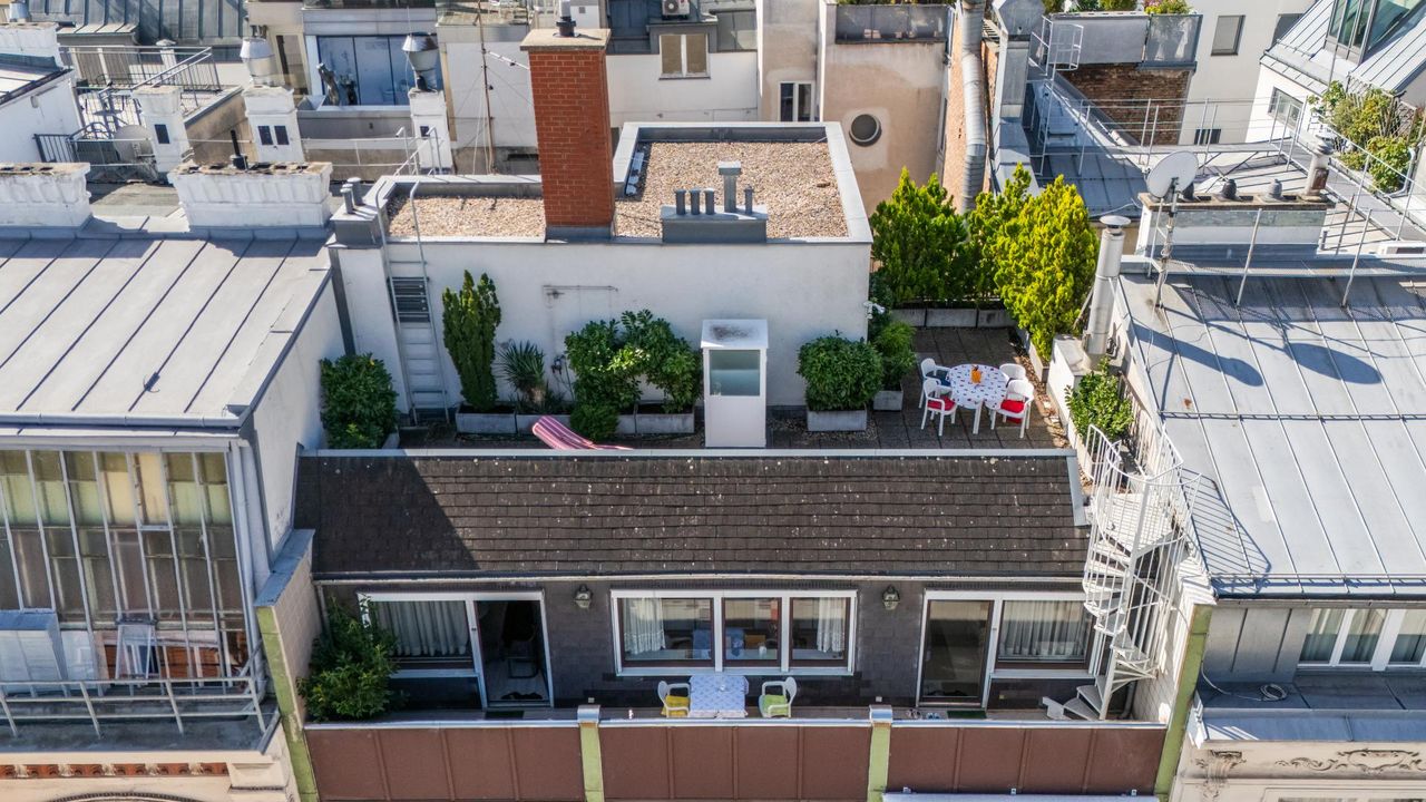 Ein besonderes Highlight ist die großzügige Dachterrasse mit traumhaftem Ausblick auf den Stephansdom und über die Dächer Wiens. Diese erreichen Sie entweder über eine Wendeltreppe vom Balkon oder komfortabel per privatem Indoor-Lift – ideal für stilvolle Abende oder die Bewirtung von Gästen.