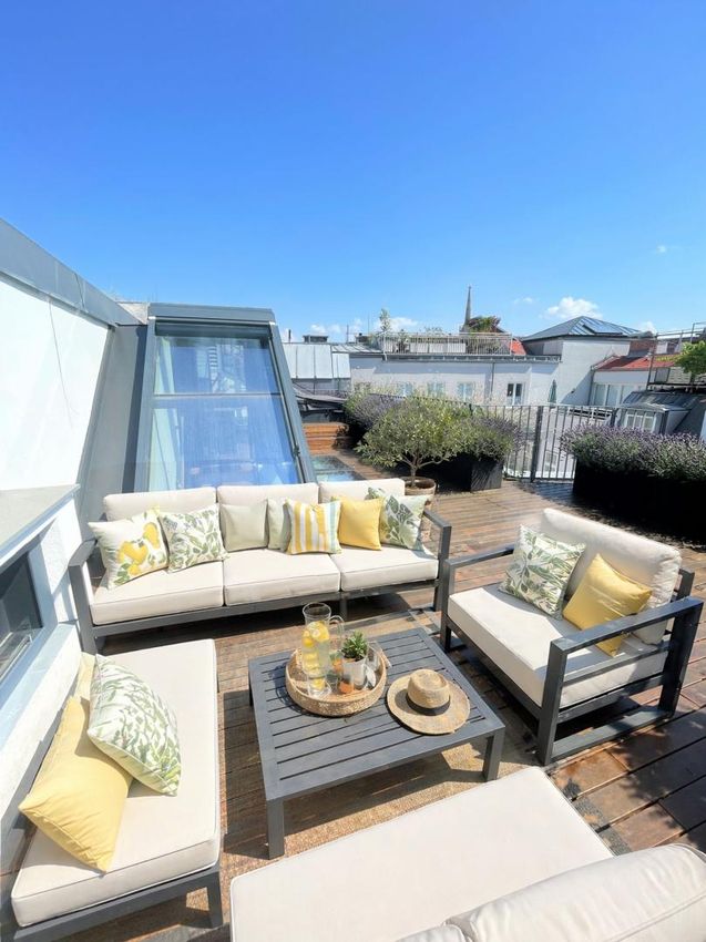 Große Fensterflächen sorgen für ein lichtdurchflutetes Ambiente, während die ruhige Hoflage ein angenehmes Wohngefühl im pulsierenden 1. Bezirk ermöglicht. Das absolute Highlight bildet die rund 65 m² große Dachterrasse mit Whirlpool – ein exklusiver Rückzugsort mit beeindruckendem Blick über die Dächer Wiens bis hin zum Stephansdom.