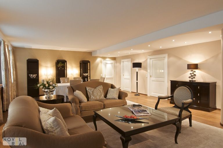 Die großzügige Raumgestaltung verbindet zeitlose Linienführung mit edlen Materialien. Maßgefertigte Einrichtungselemente, ausgewählte Kunstakzente und ein harmonisches Farbkonzept schaffen eine Atmosphäre, die Professionalität und Komfort perfekt vereint.