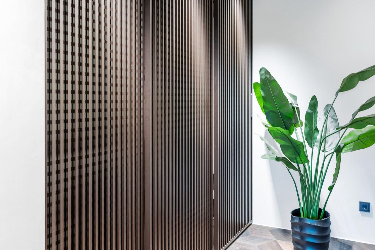 - Ein großzügiger Schrankbereich mit stilvollen Kästen von Rimadesio sorgt für ausreichend Stauraum und bringt Ordnung in Ihr Zuhause.