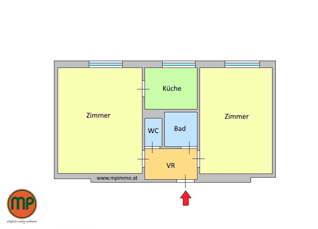 Die knapp 60 m² große 2-Zimmer-Wohnung überzeugt durch einen durchdachten Grundriss und ein freundliches Wohnambiente im 4. Stock mit Aufzug. Die klassische Raumaufteilung bietet ein getrenntes Badezimmer (mit Wanne) und WC, sowie separat begehbar das Wohnzimmer und das Schlafzimmer. Ein eigener Küchenraum bietet Platz für kulinarische Entfaltung unabhängig vom Wohnbereich. Der helle Laminatboden in den Wohnräumen sorgt für eine warme, einladende Atmosphäre; während hochwertige Fließenböden in den Nassräumen Langlebigkeit und einfache Reinigung garantieren. Ergänzend steht Ihnen im Keller Ihr eigenes Abteil zur Verfügung. Durch die Lage im 4. Stock profitieren Sie von viel Tageslicht und einer angenehmen Distanz zum Straßenraum.