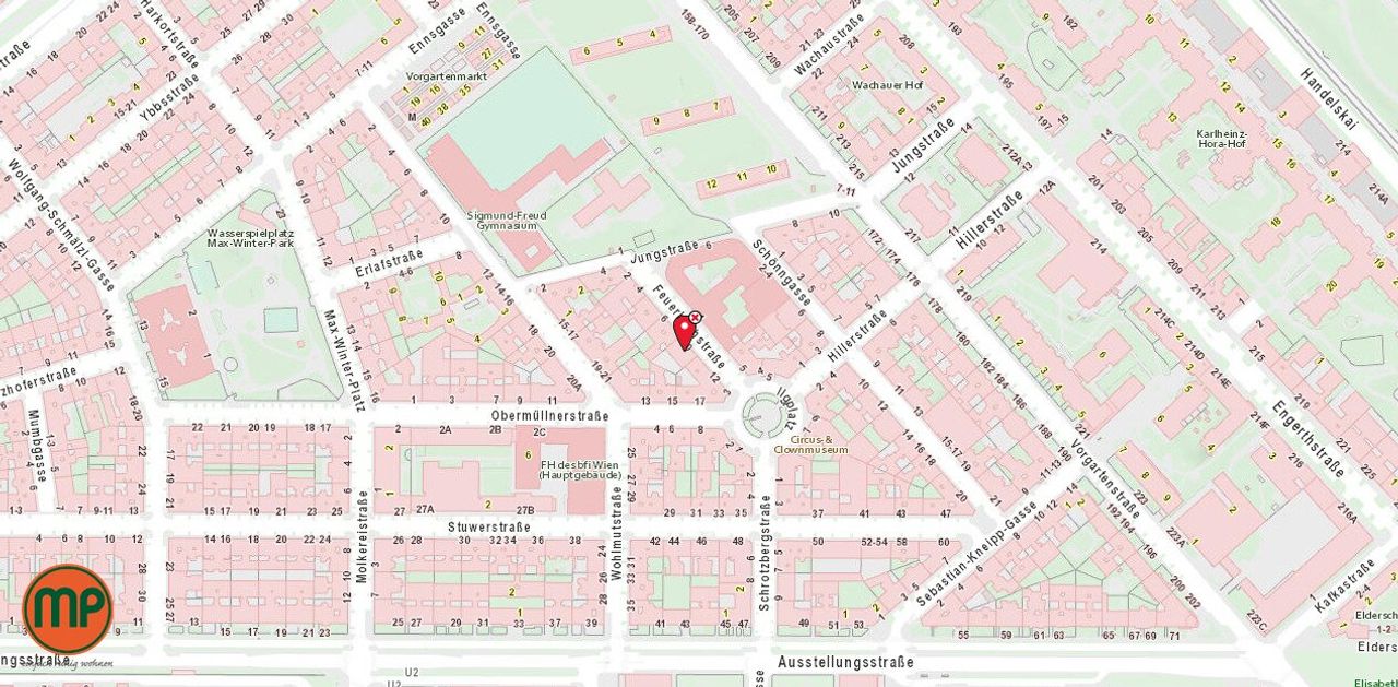 Die Verkehrsanbindung ist exzellent: U2 Messe-Prater und U1 Vorgartenstraße sind in wenigen Minuten zur Fuß erreicht, außerdem ideale Anbindung an A22/A23 mit dem Auto.