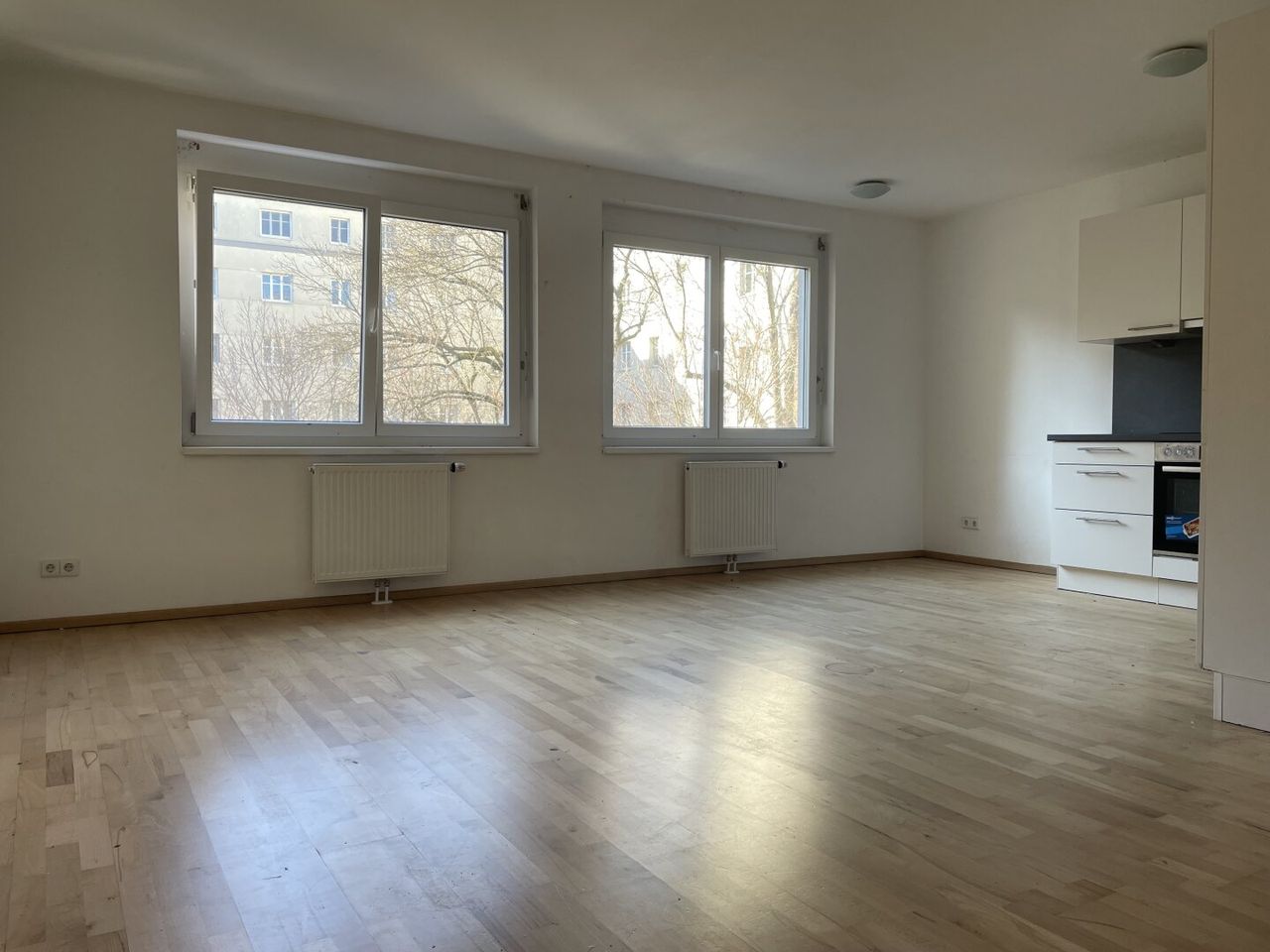 Die verkehrsgünstig gelegene Etagenwohnung bietet einen großzügigen Wohn-Essbereich, Einbauküche inkl. Geräte, Badezimmer mit Dusche, Vorraum und Toilette.