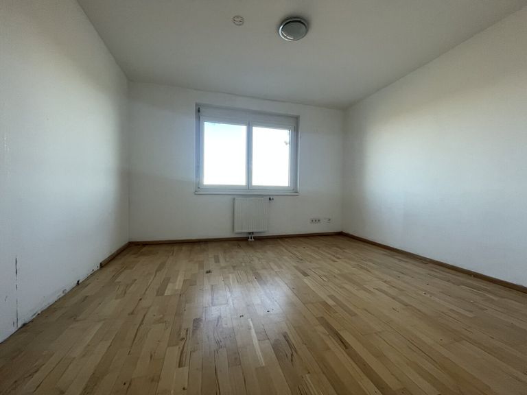 Die verkehrsgünstig gelegene Etagenwohnung bietet einen großzügigen Wohn-Essbereich mit direktem Zugang zum Balkon, Einbauküche inkl. Geräte, zwei Schlafzimmern, Balkon, Badezimmer mit Badewanne, Vorraum und Toilette.
