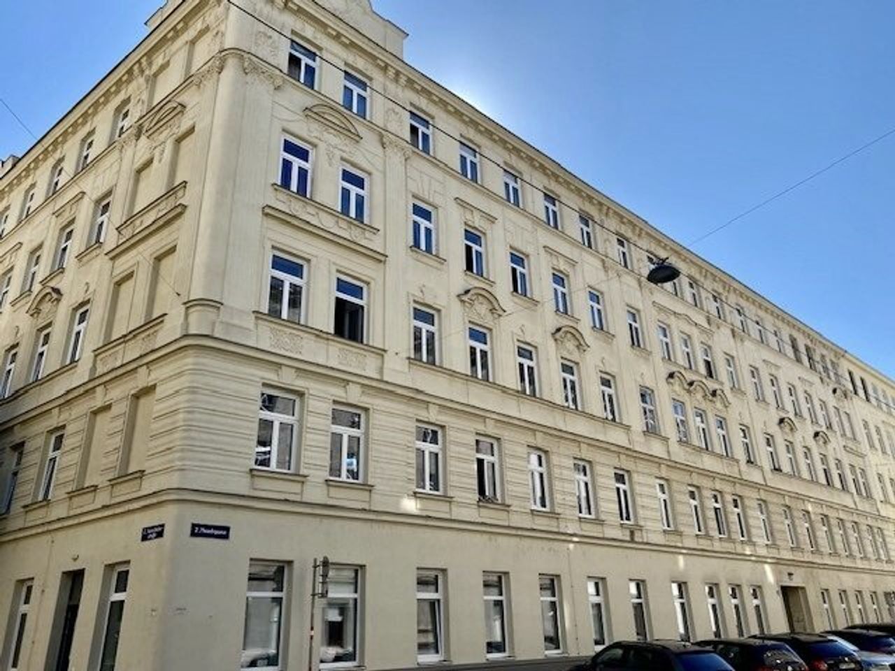 Das Zimmer geht auf eine ruhige Gasse und die Küche ist hofseitig mit Fenster zum Gang ausgerichtet.