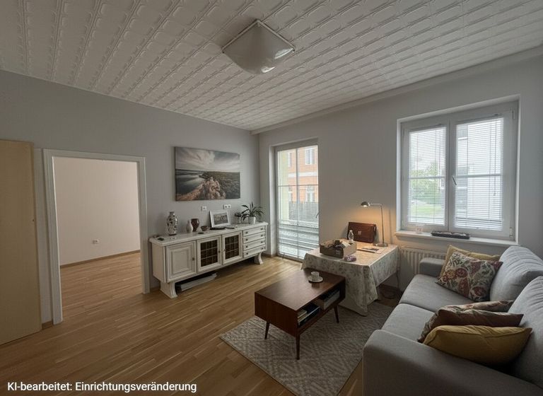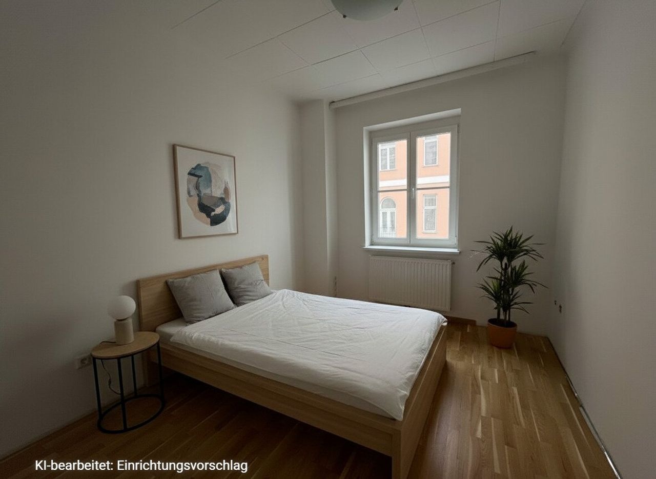 Das zweite Schlafzimmer liegt hofseitig und bietet die Möglichkeit hier das Wohnzimmer mit einer Wohnküche zu errichten, wodurch Sie ein zusätzliches Zimmer bekommen würden.