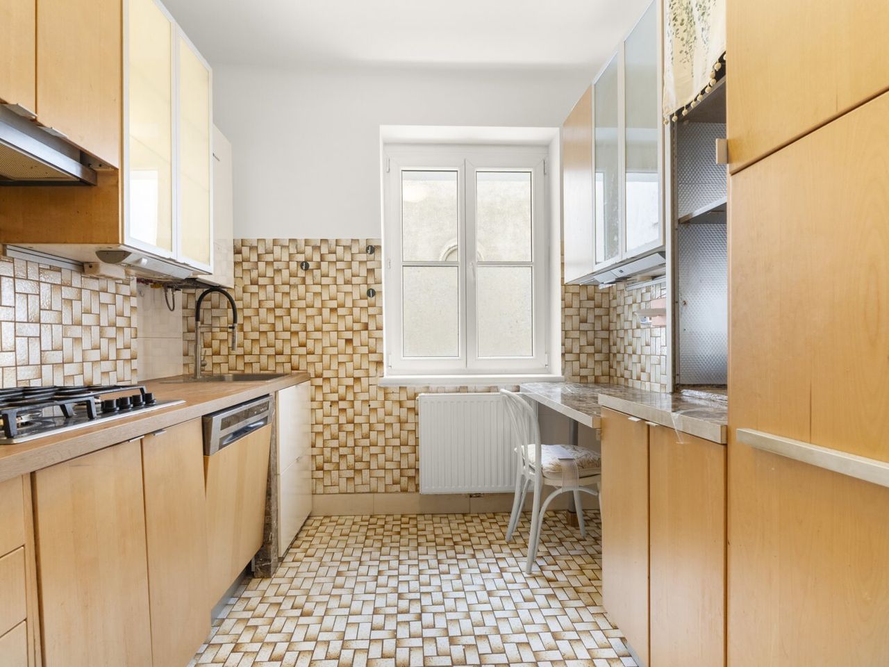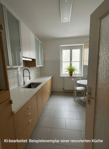 Die Einbauküche wurde nicht erneuert, ist aber in brauchbarem Zustand.