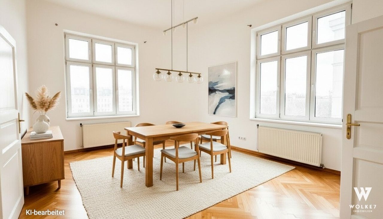 Diese wunderschöne Altbauwohnung vereint klassische Architektur mit angenehmem Wohnkomfort. Hohe Decken, großzügige Räume und große Fenster sorgen für ein offenes, helles Wohngefühl.