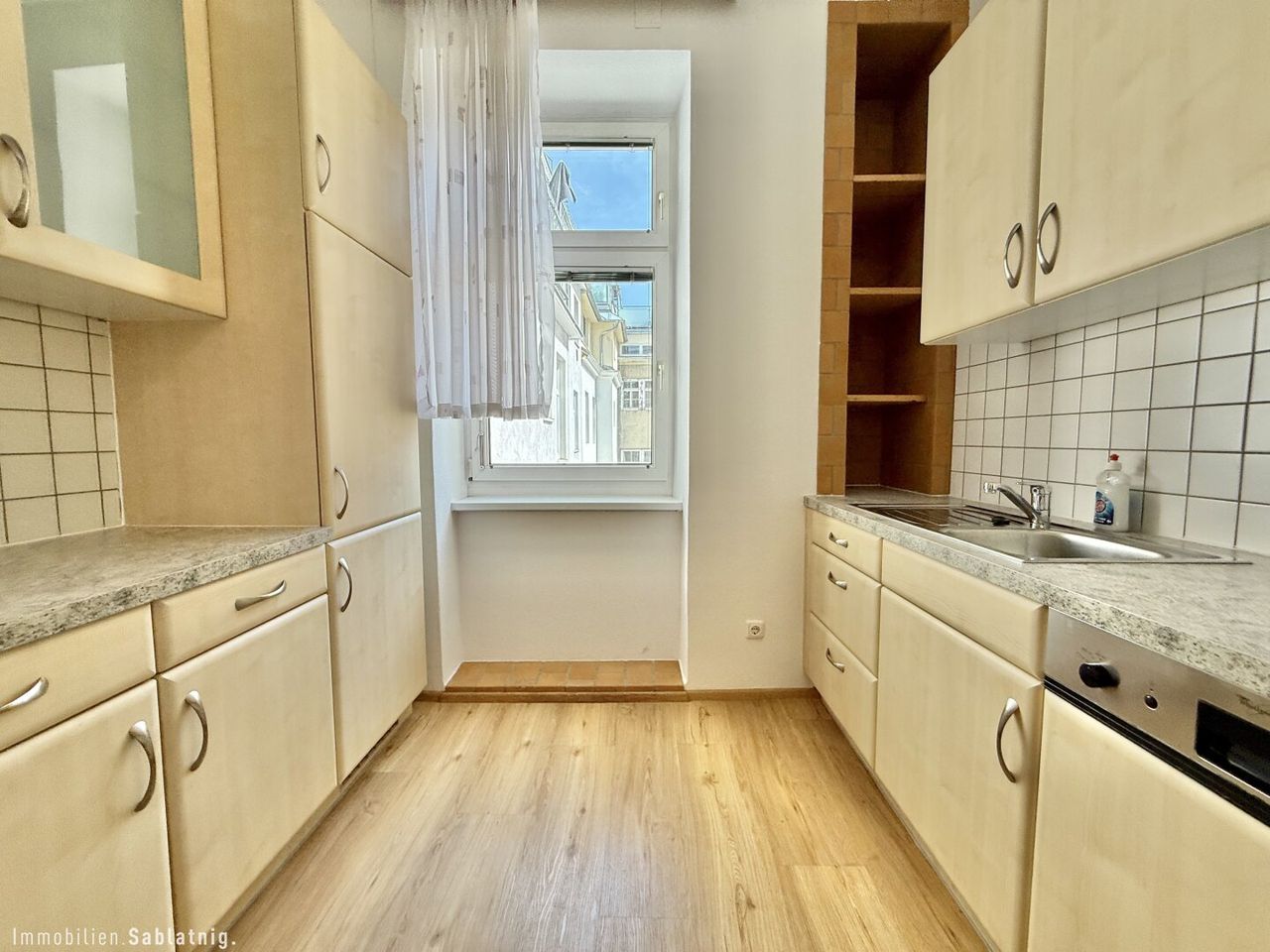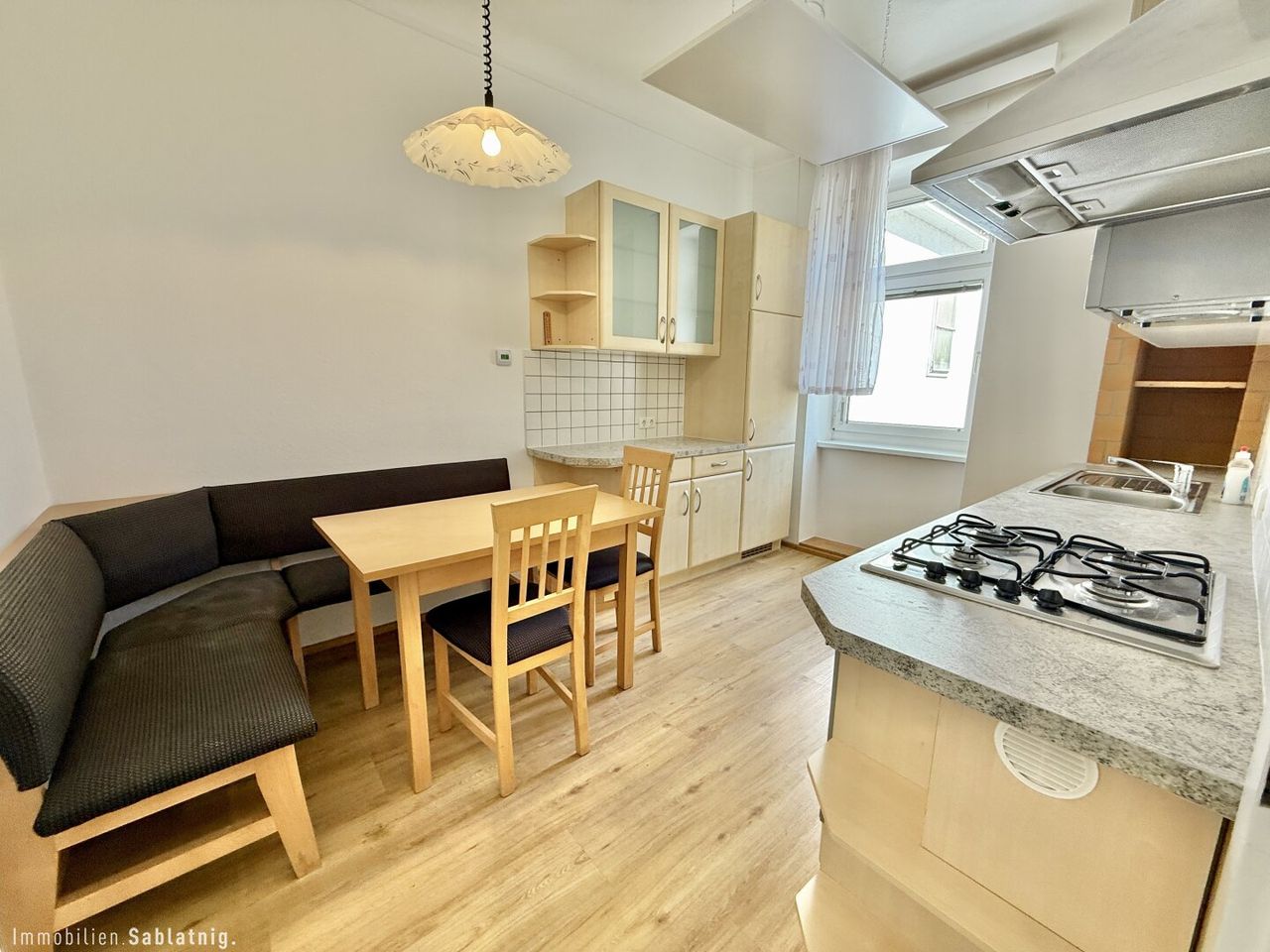 Einbauküche (mit Fenster) inkl. geräumiger Sitzecke, Vinylboden