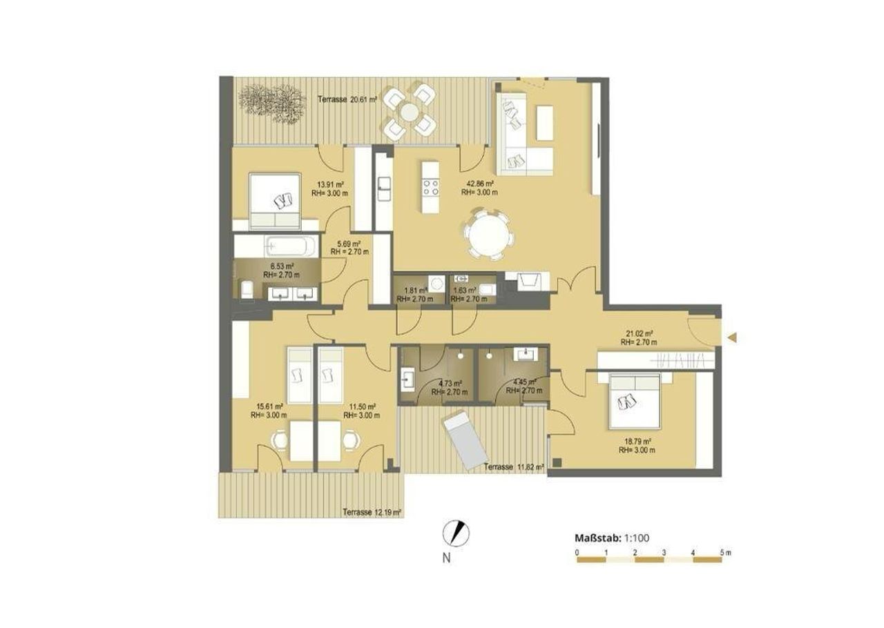 Großzügige Terrassen mit Nord-Süd-Ausrichtung