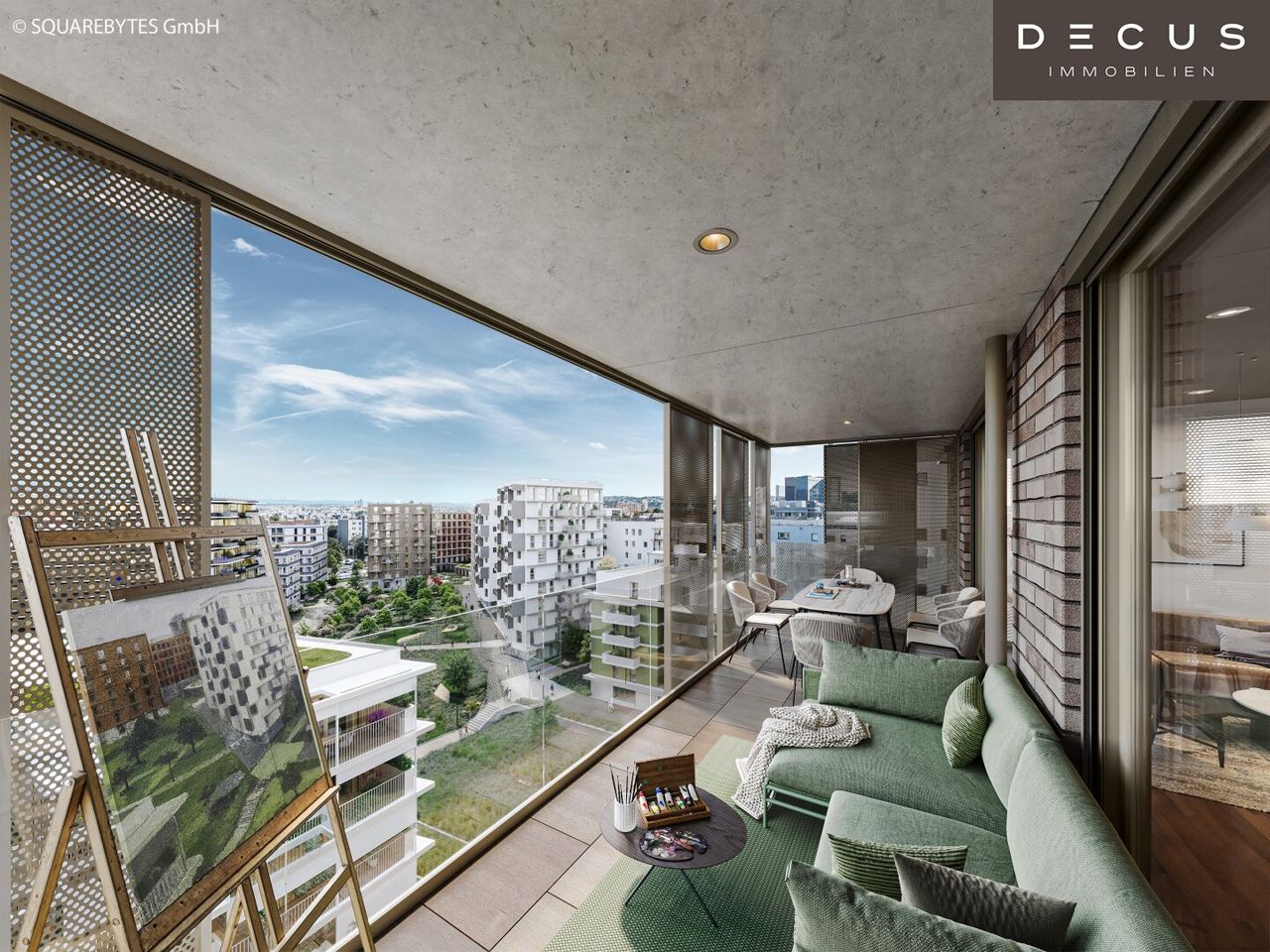 - ein überdachter Balkon mit Nurglasbrüstung