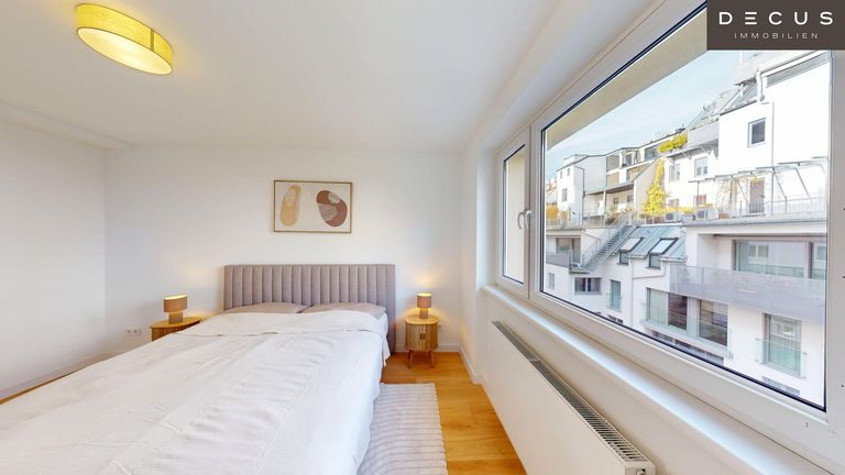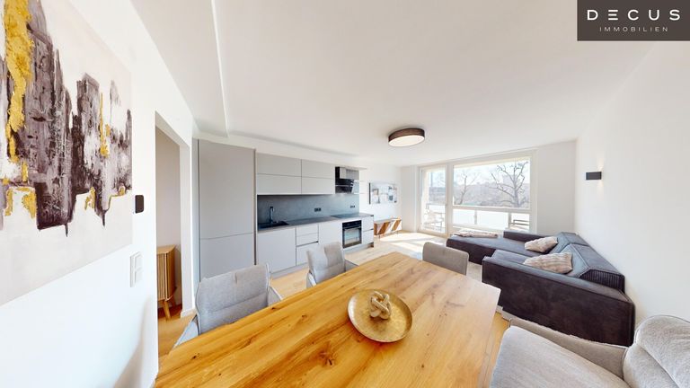 Die drei Schlafzimmer liegen ruhig zum Innenhof und bieten ein angenehmes Wohnklima – während das südseitige Wohnzimmer mit Loggia durch den herrlichen Grün- und Weitblick über den Schweizergarten bis hin zum Arsenal begeistert.