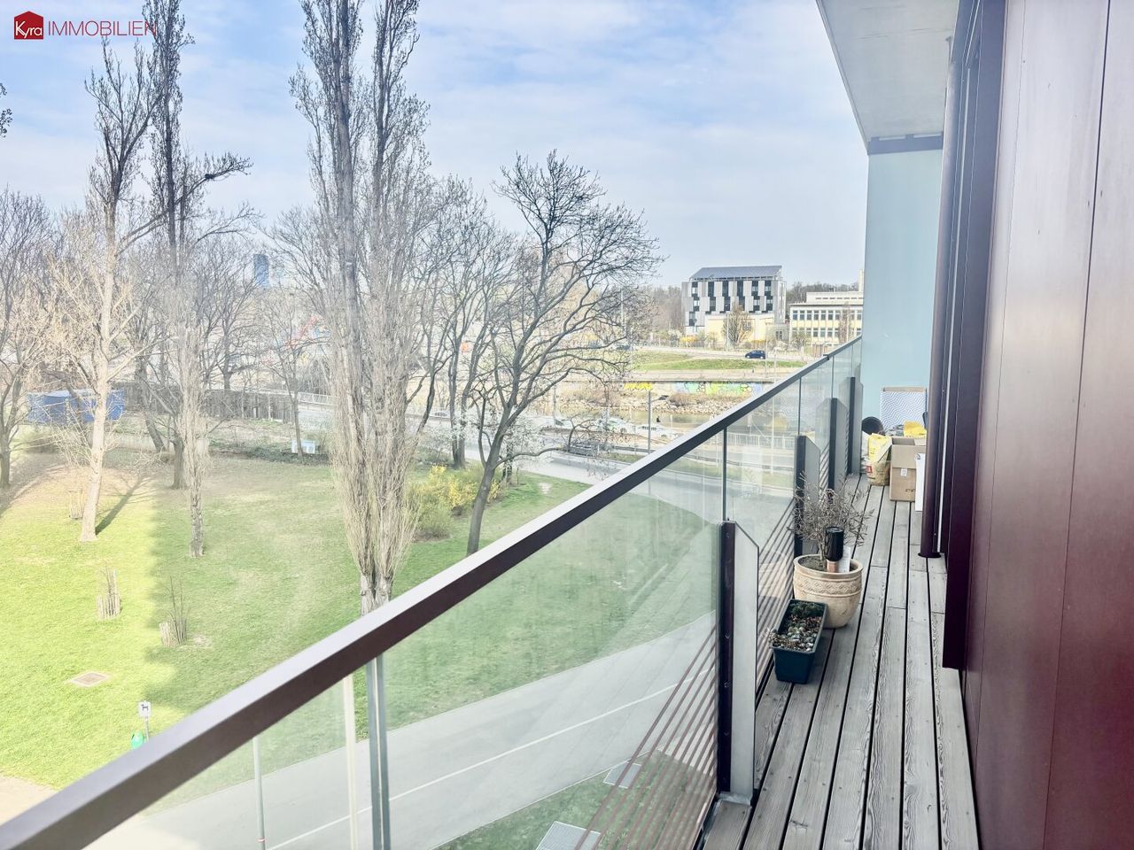 Die helle Wohnung besticht durch einen großzügigen Eckbalkon mit südwestlicher Ausrichtung (16 m²), von dem Sie einen bezaubernden Stadtblick genießen können und das Riesenrad sehen – der perfekte Rückzugsort zum Entspannen oder für gesellige Stunden mit Freunden. Edle Parkett- und Fliesenböden, kombiniert mit einer komfortablen Fußbodenheizung, sorgen für ein...