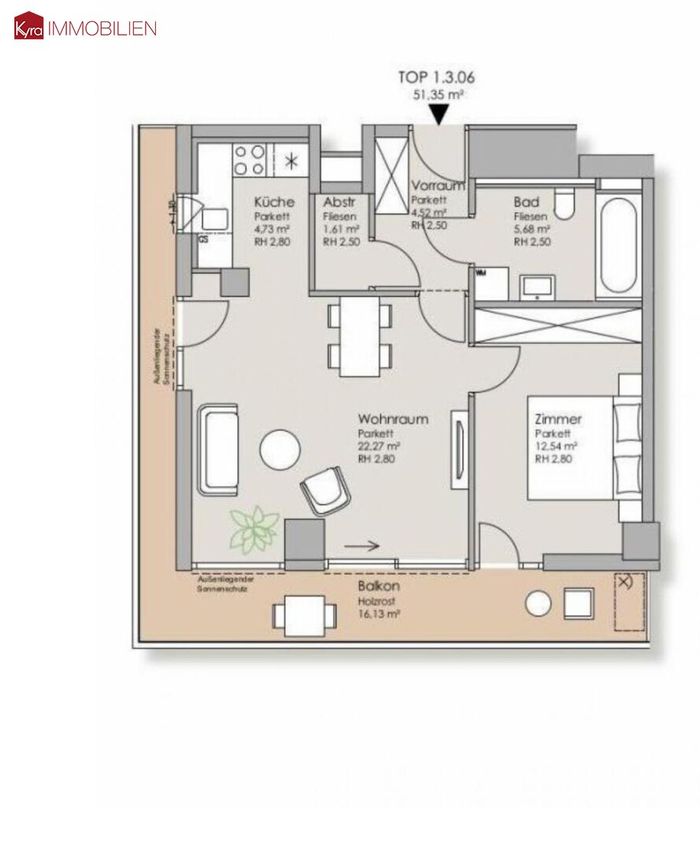 Die helle Wohnung besticht durch einen großzügigen Eckbalkon mit südwestlicher Ausrichtung (16 m²), von dem Sie einen bezaubernden Stadtblick genießen können und das Riesenrad sehen – der perfekte Rückzugsort zum Entspannen oder für gesellige Stunden mit Freunden. Edle Parkett- und Fliesenböden, kombiniert mit einer komfortablen Fußbodenheizung, sorgen für ein angenehmes Wohnklima zu jeder Jahreszeit.