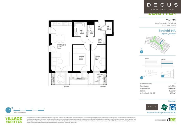Nähere Informationen zu den Wohnungen auch online unter: https://villageimdritten.at/wohnungsfinder/