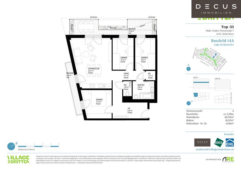 Nähere Informationen zu den Wohnungen auch online unter: https://villageimdritten.at/wohnungsfinder/