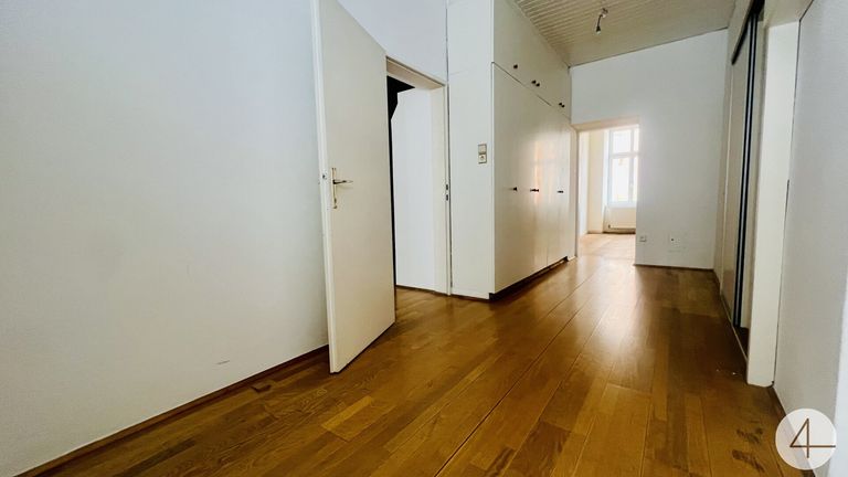 Die Wohn- und Schlafräume begeistern mit Parkett und Fischgrätböden, hohen Räumen und großen Fenstern, die für ein helles und angenehmes Wohnambiente sorgen.